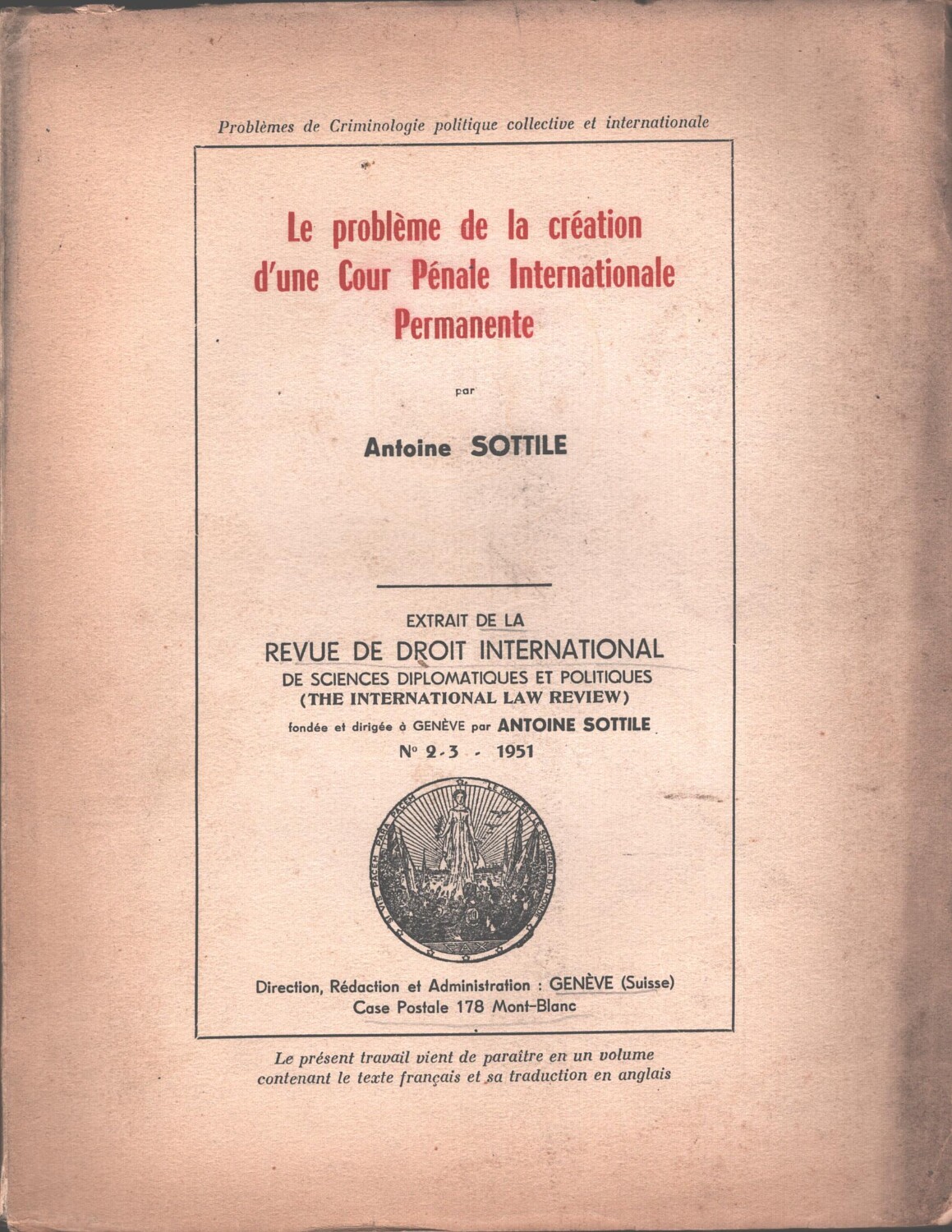 | Titolo: | Le probleme de la creation d’une Cour Penale Internationale Permanente di Antoine Sottile – Libro in Francese ed. 1951 |
