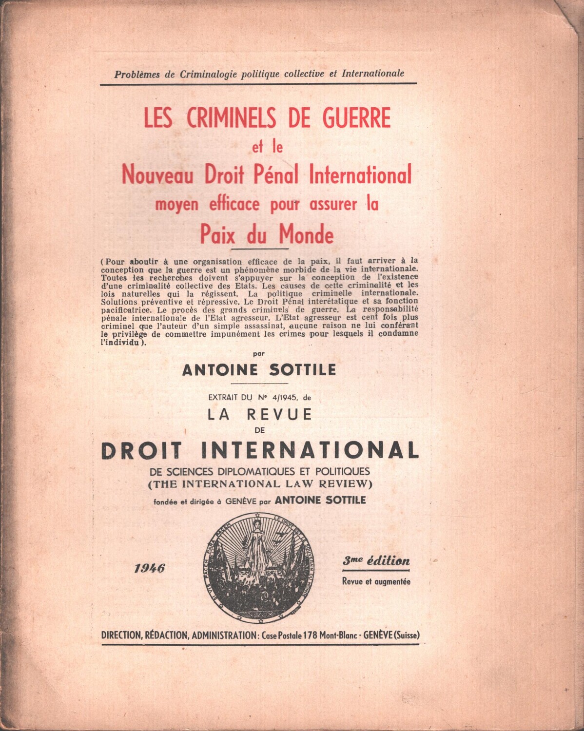 Les criminels de guerre et le Nouveau Droit Pénal International di Antoine Sottile – Libro in Francese ed. 1946
