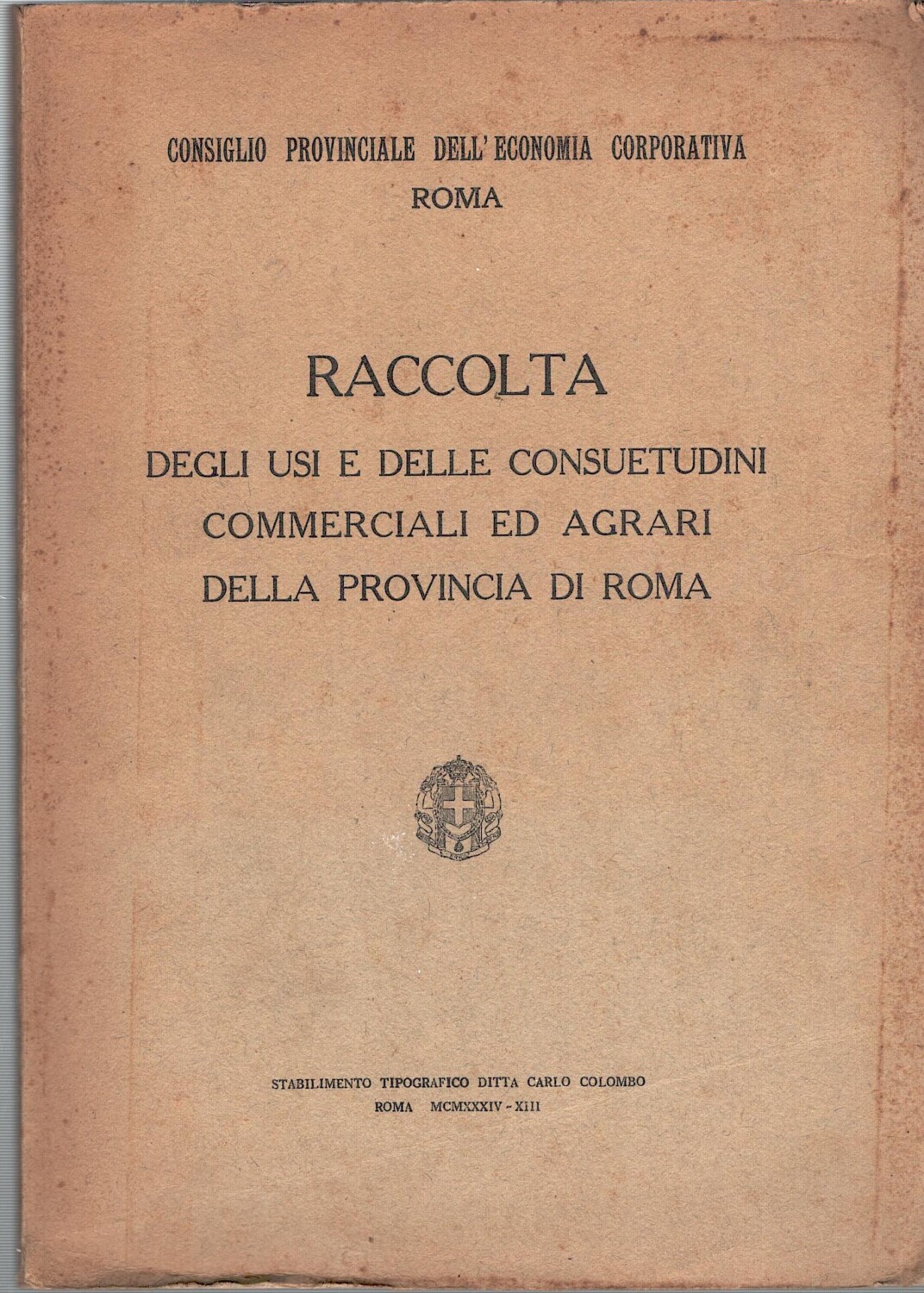 | Titolo: | Raccolta usi e consuetudini commerciali agrari provincia Roma di AA.VV. ed. Colombo (1934) |