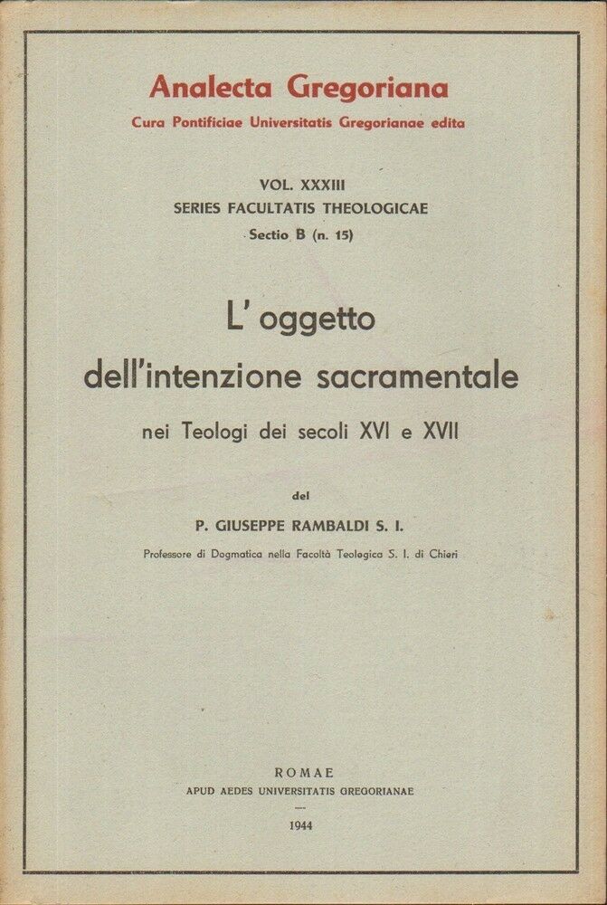 L'OGGETTO DELL'INTENZIONE SACRAMENTALE di Rambald ed. Pont. Univers. Gregoriana