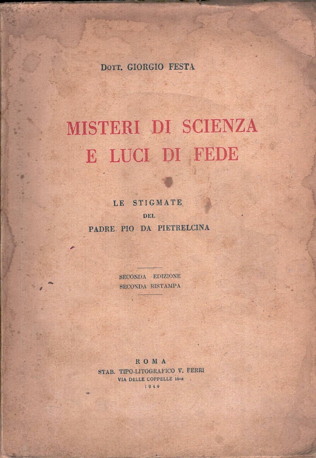 Misteri di scienza e luci di fede le stigmate del padre Pio da Pietrelcina di Giorgio Festa ed. Ferri