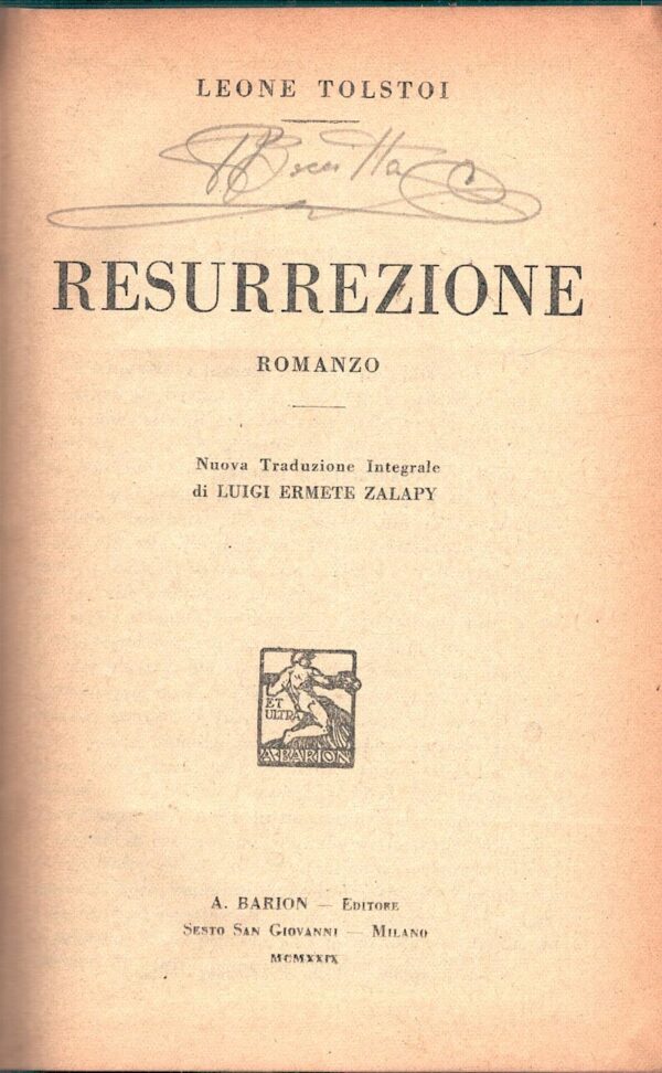 | Titolo: | Resurrezione di Leone Tolstoi ed. Barion (1929) |