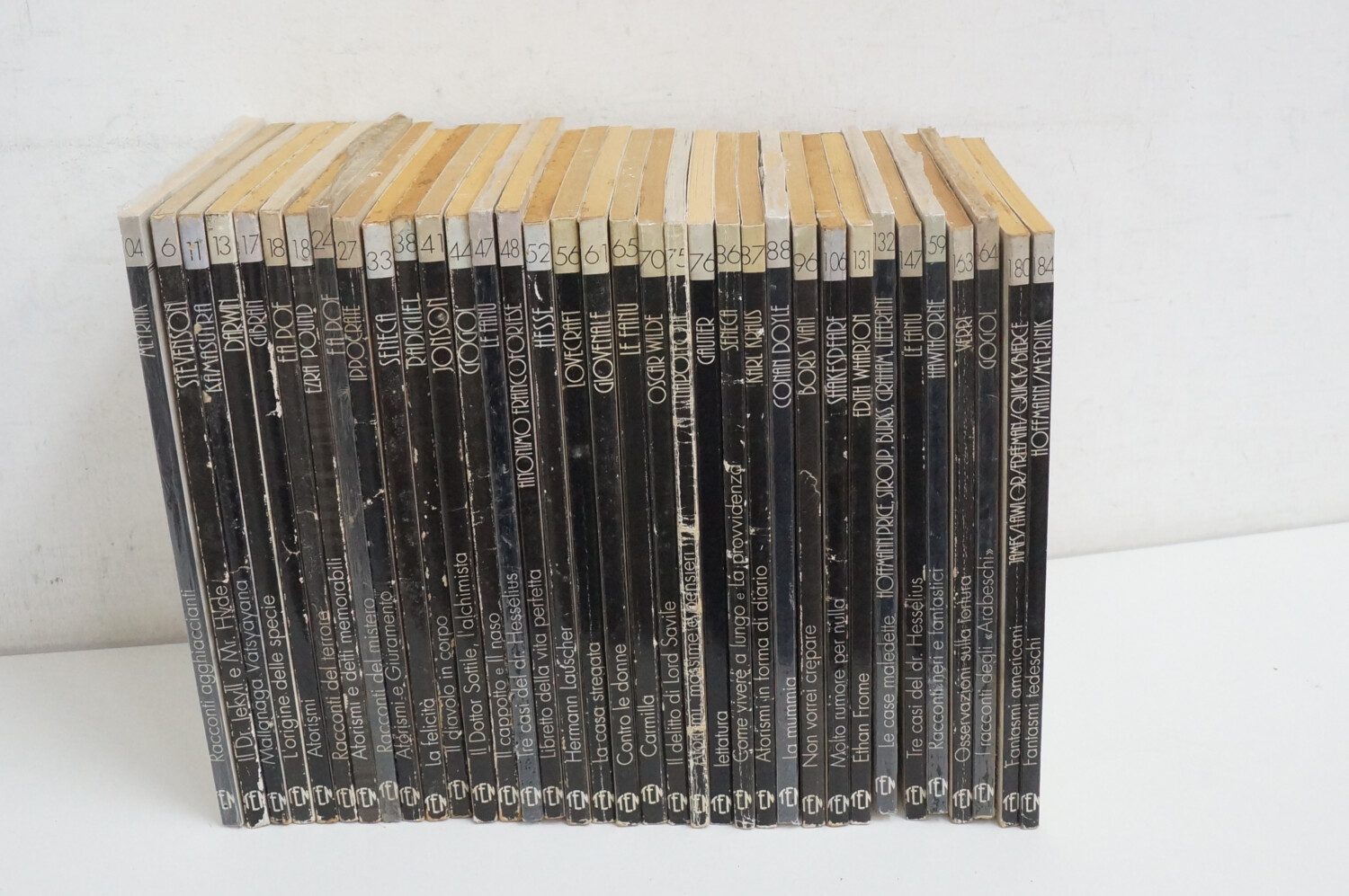 | I libri in vendita sono esattamente gli stessi delle immagini allegate. Tutti i volumi sono in buone condizioni e presentano un po’ di usura e qualche piccolo strappetto ai bordi della copertina, pieghe di lettura sul dorso, le pagine ingiallite ed hanno macchioline di ingiallimento. I libri inclusi in questo lotto sono quelli delle foto allegate. |