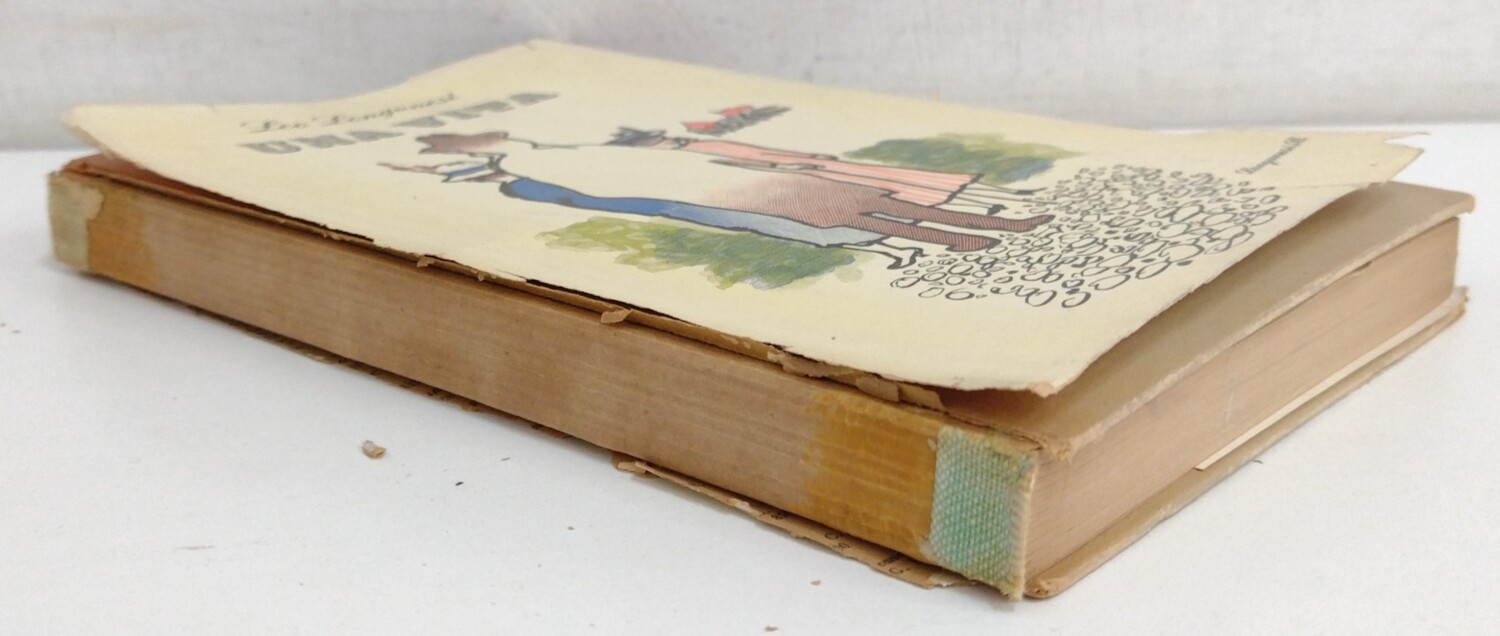 | Nessuna scritta. Copertina: condizioni accettabili, la sovracopertina ha strappi, mancanze e usura, l’aletta interna anteriore è completamente distaccata, il dorso è mancante. La copertina è un po’ scolorita ed ha il dorso completamente mancante . Pagine: condizioni buone, sono ingiallite ai bordi. |
