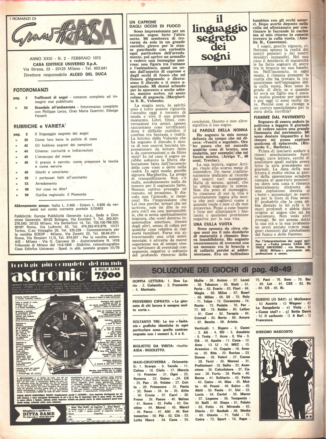 | Titolo: | I romanzi di Grand Hotel Casa n. 2 – Febbraio 1973 – Fotoromanzo Philippe Leroy, Edwige Fenech ed. Universo |