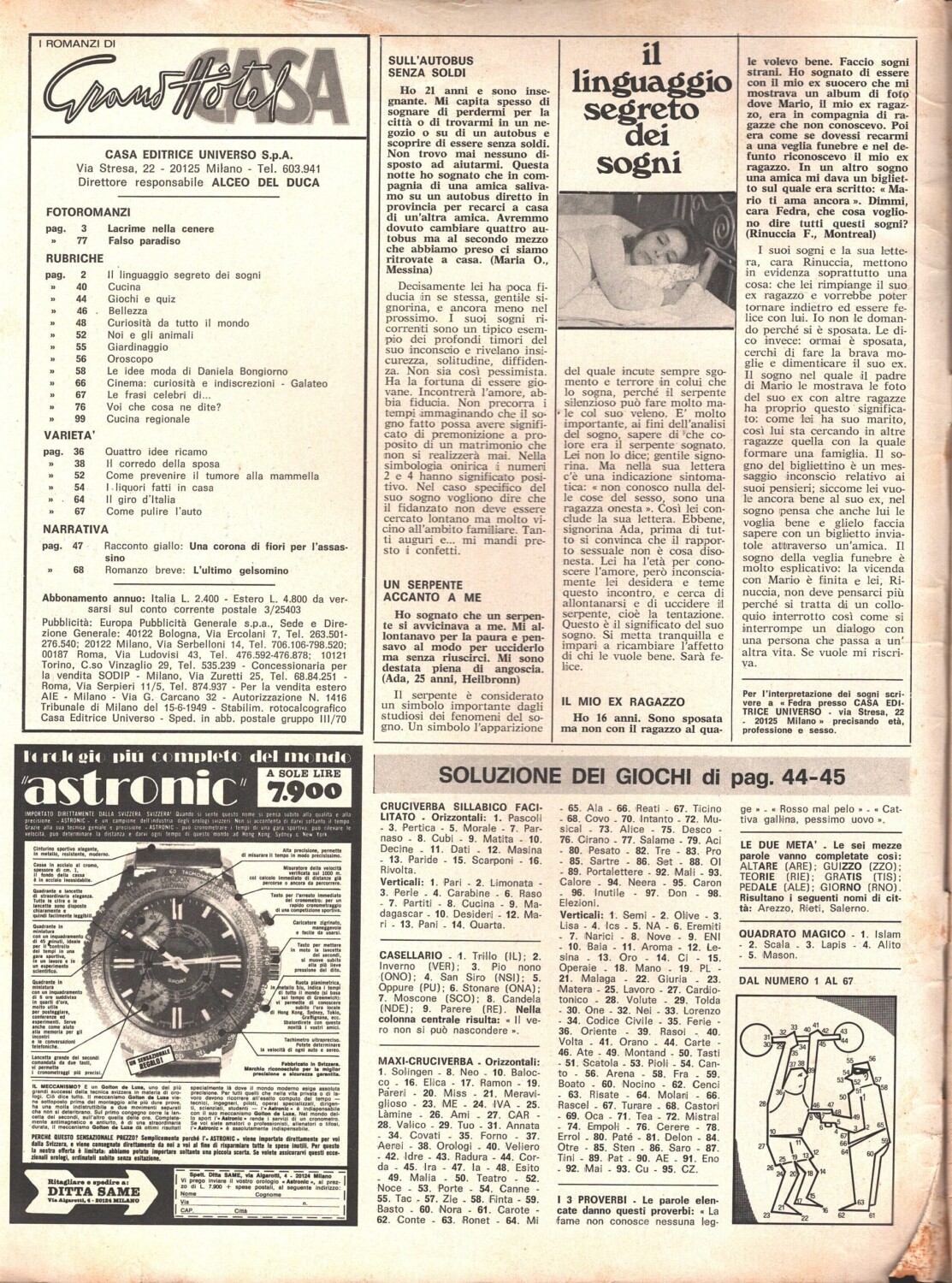 | Titolo: | I romanzi di Grand Hotel Casa n. 5 – Maggio 1973 – Fotoromanzo Enzo Bottesini ed. Universo |