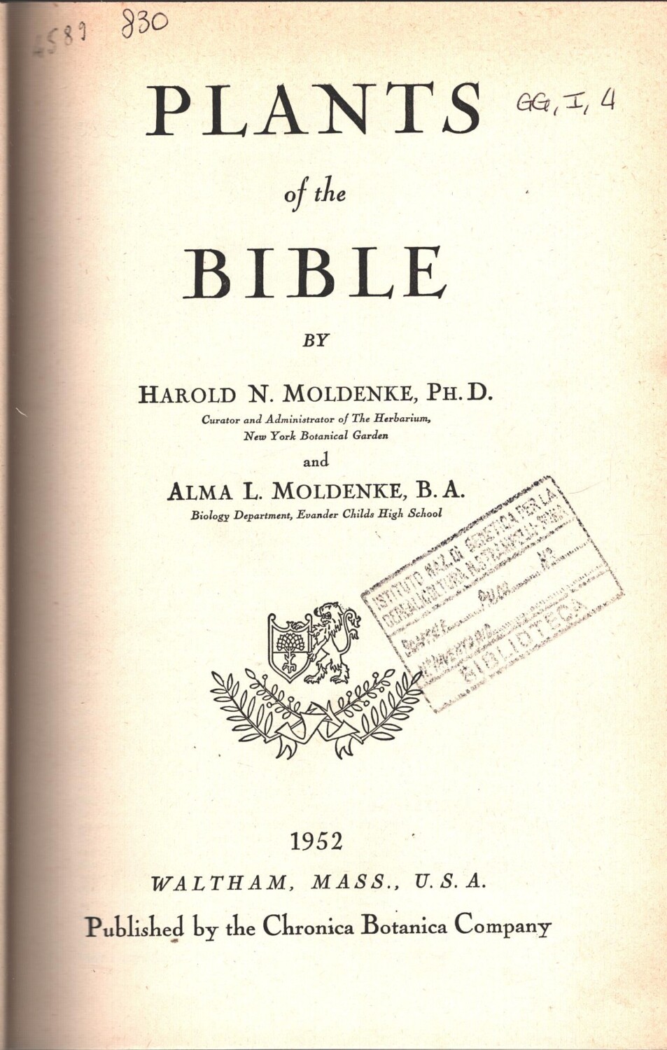 | Titolo: | Plants of the Bible di Harold e Alma Moldenke – Libro in Inglese ed. Chronica Botanica Company (1952) |