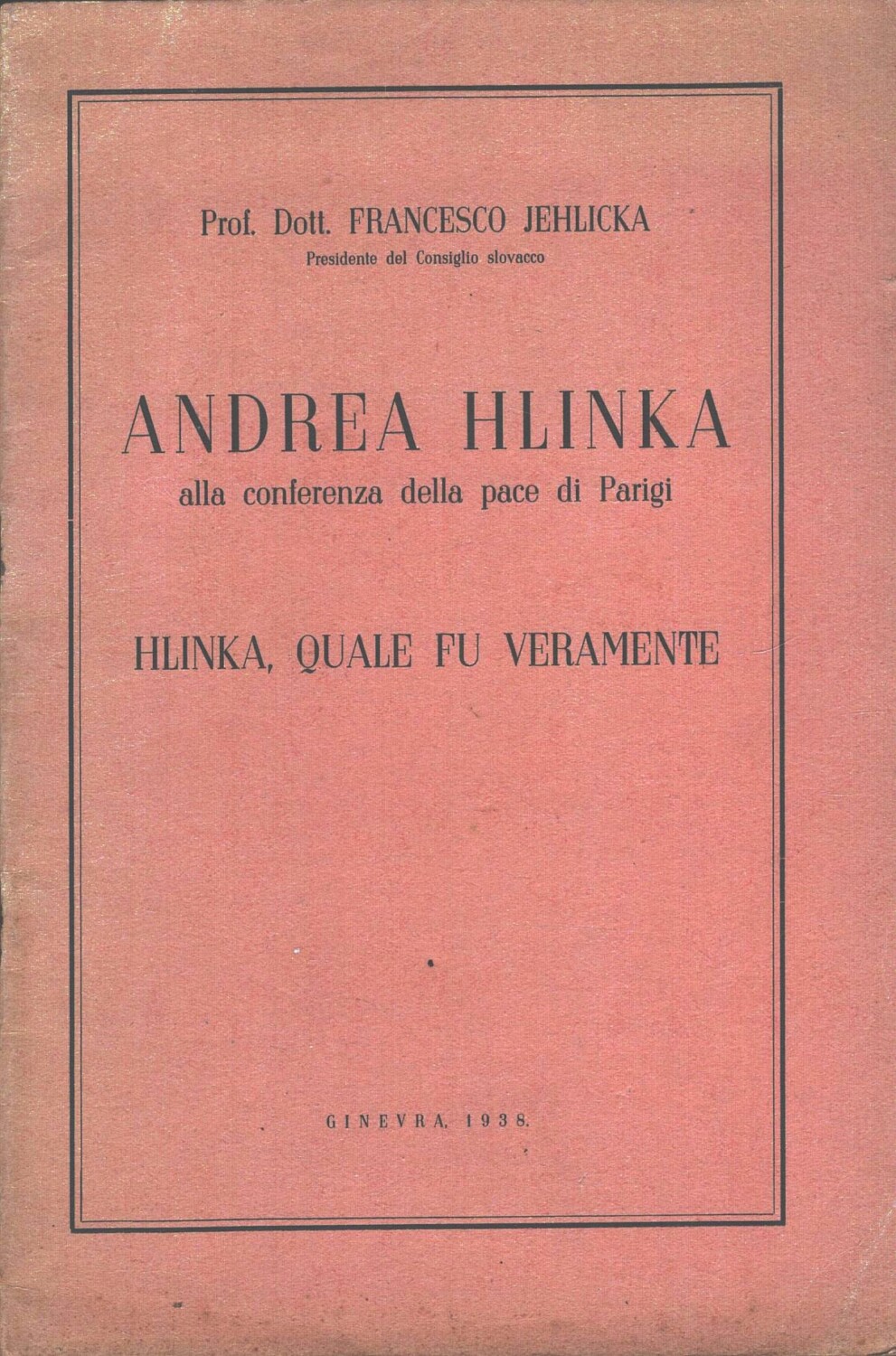 | Titolo: | Andrea Hlinka alla conferenza di pace – Hlinka, quale fu veramente di Francesco Jehlicka ed. Ginevra (1938) |
