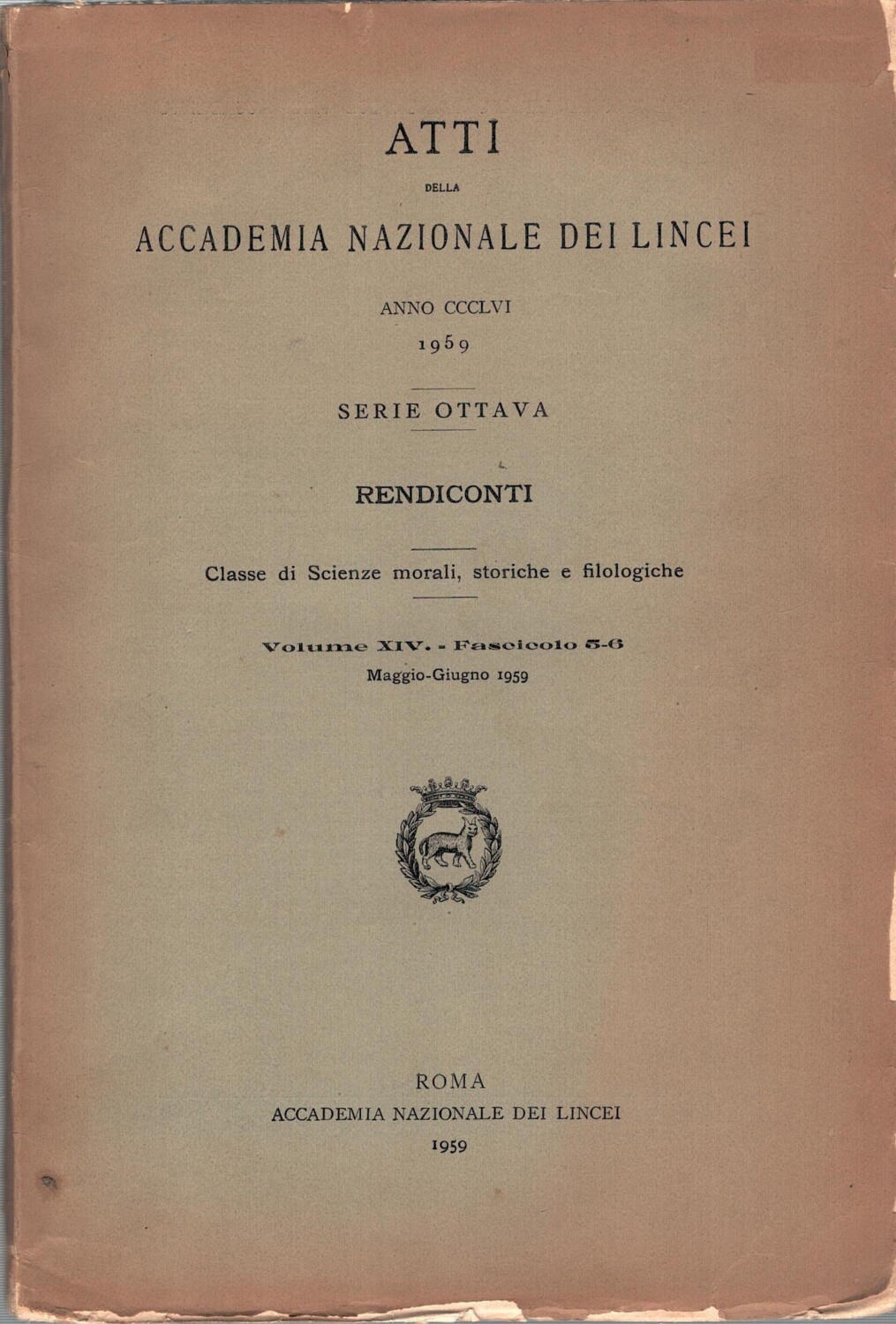 Atti della Accademia Nazionale dei Lincei – Rendiconti 1959 volume XIV fascicolo 5-6 ed. Accademia Nazionale dei Lincei