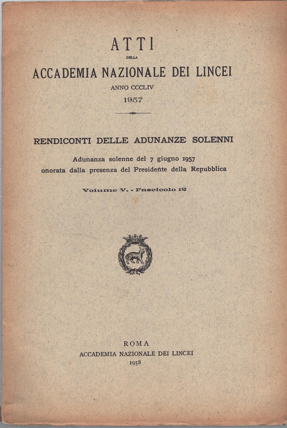 | Titolo: | Atti della Accademia Nazionale dei Lincei – Rendiconti Adunanze Solenni 1957 volume V fascicolo 12 ed. Accademia Nazionale dei Lincei |