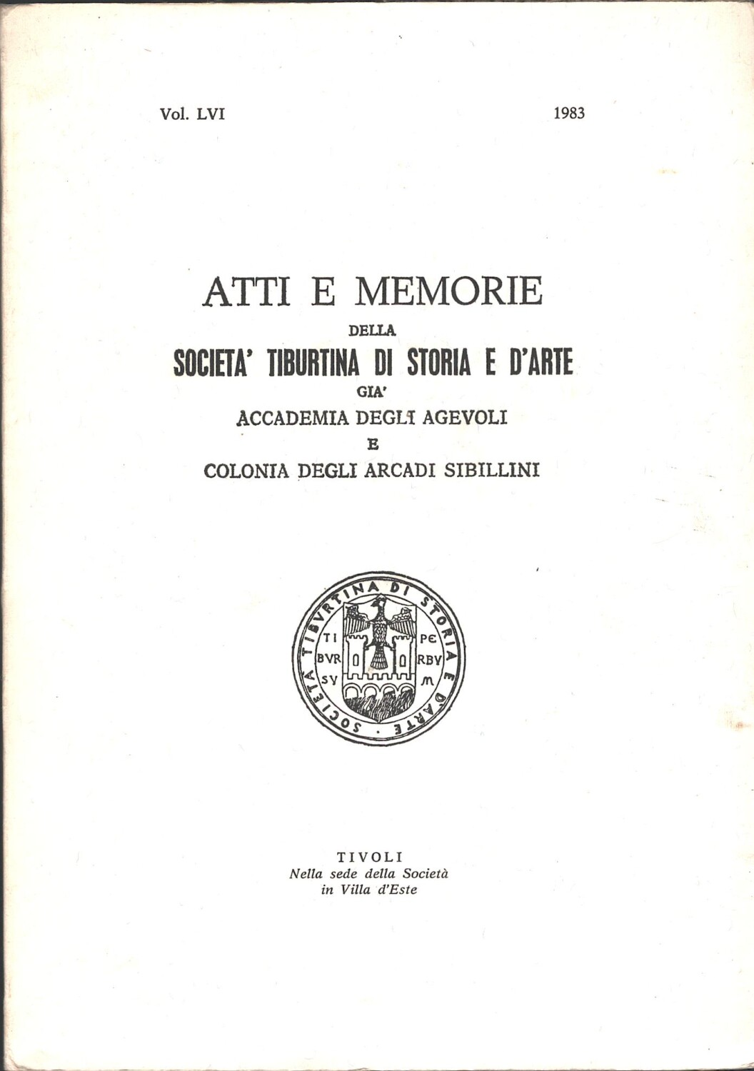| Titolo: | Atti e Memorie della Società Tiburtina di Storia e d’Arte vol. LIV – 1983 di AA.VV. ed. Società Tiburtina di Storia e d’Arte |