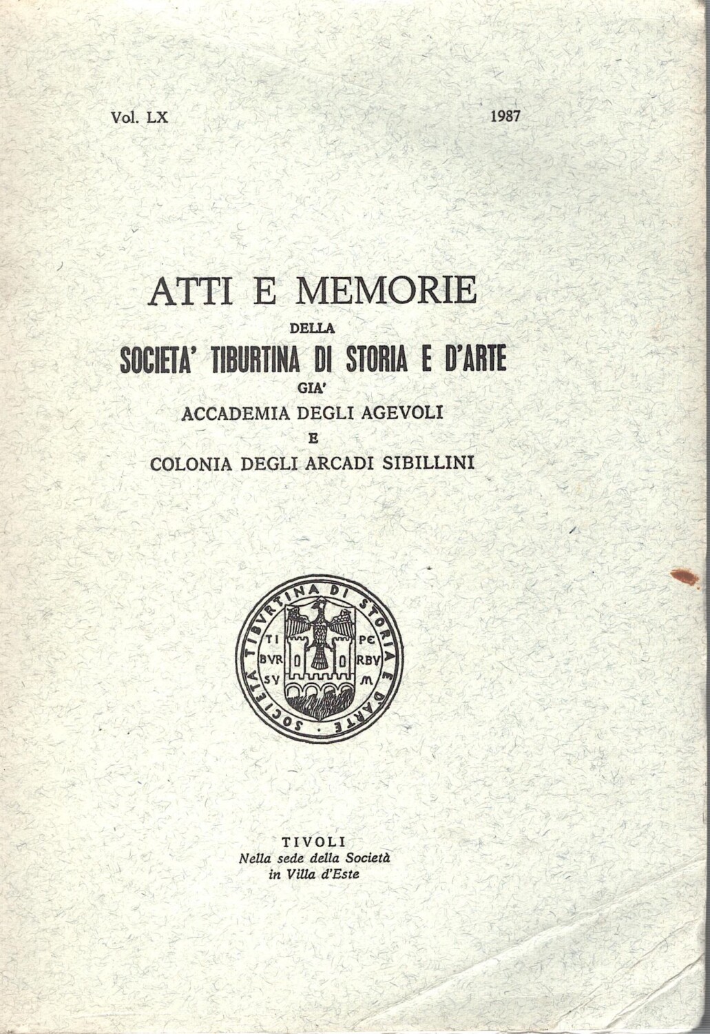 | Titolo: | Atti e Memorie della Società Tiburtina di Storia e d’Arte vol. LX – 1987 di AA.VV. ed. Società Tiburtina di Storia e d’Arte |