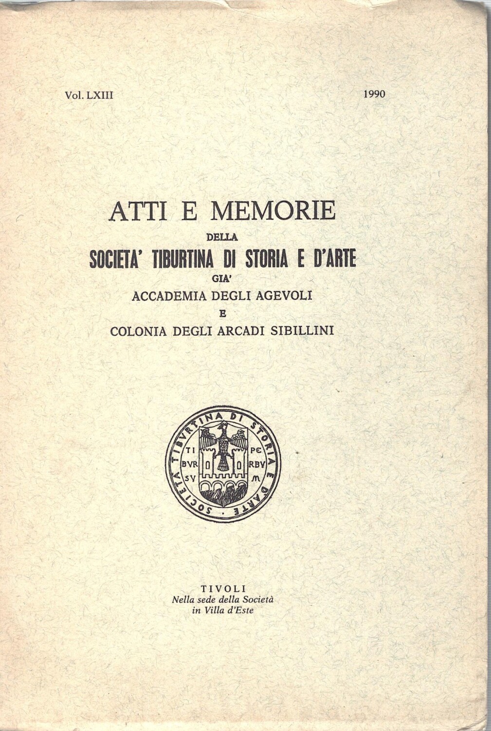| Titolo: | Atti e Memorie della Società Tiburtina di Storia e d’Arte vol. LXIII – 1990 di AA.VV. ed. Società Tiburtina di Storia e d’Arte |