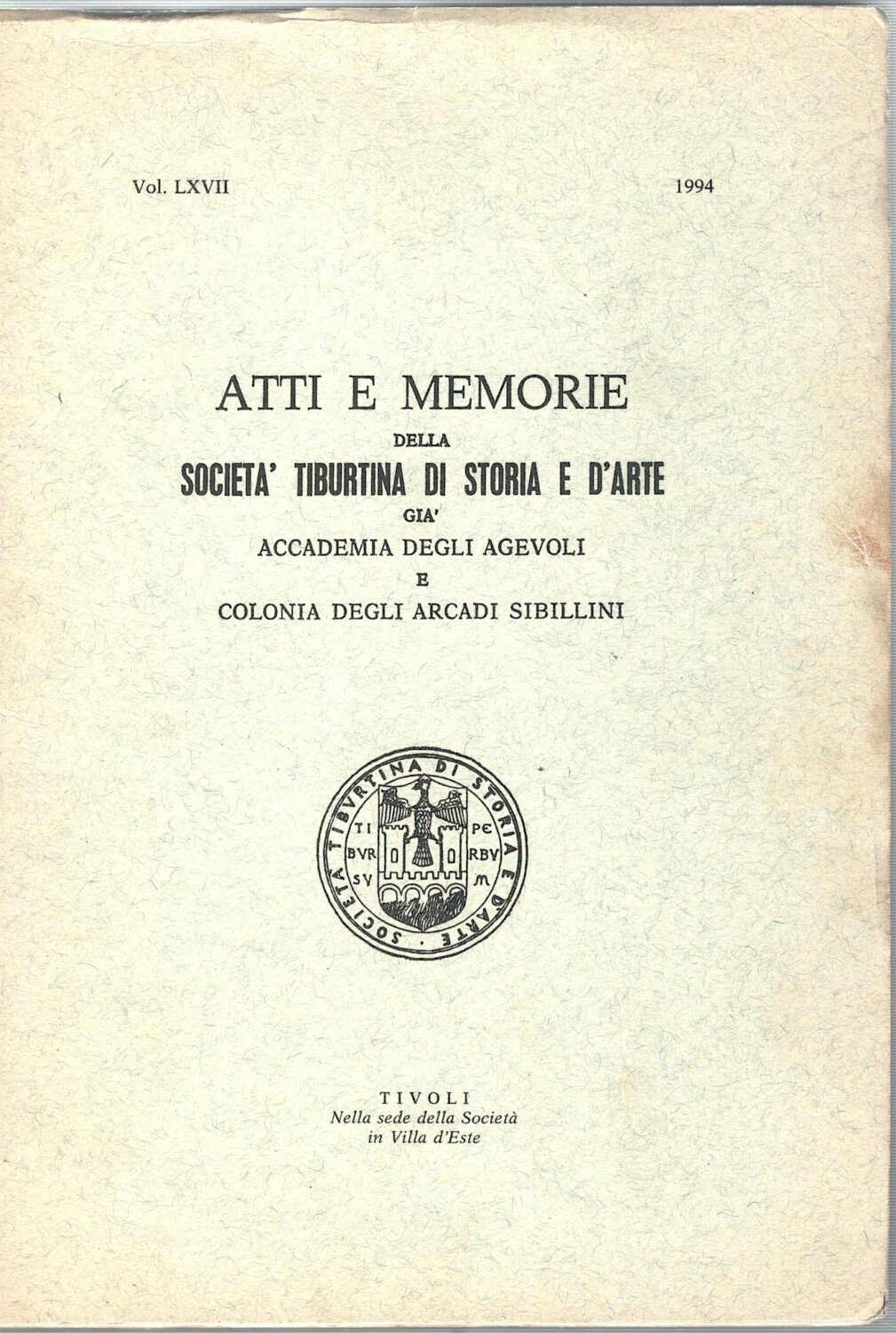 | Titolo: | Atti e Memorie della Società Tiburtina di Storia e d’Arte vol. LXVII – 1994 di AA.VV. ed. Società Tiburtina di Storia e d’Arte |