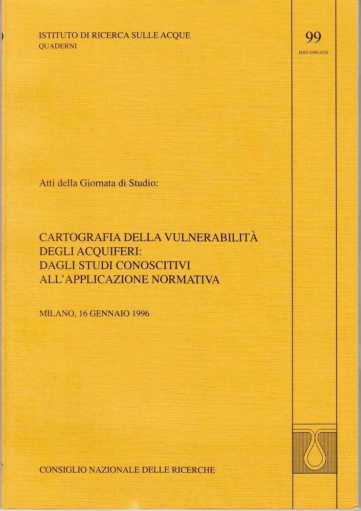 CARTOGRAFIA VULNERABILITA’ DEGLI ACQUIFERI. Atti della Giornata di Studio ed. CNR
