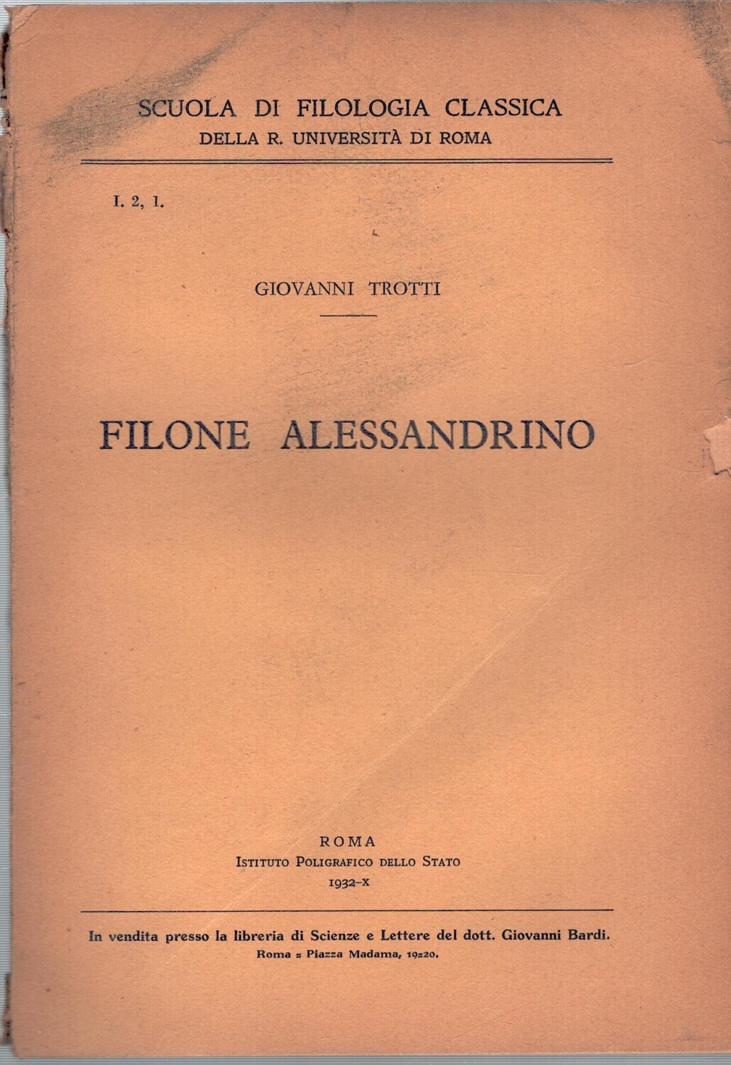 | Titolo: | Filone Alessandrino di Giovanni Trotti ed. Istituto Poligrafico dello Stato (1932) |