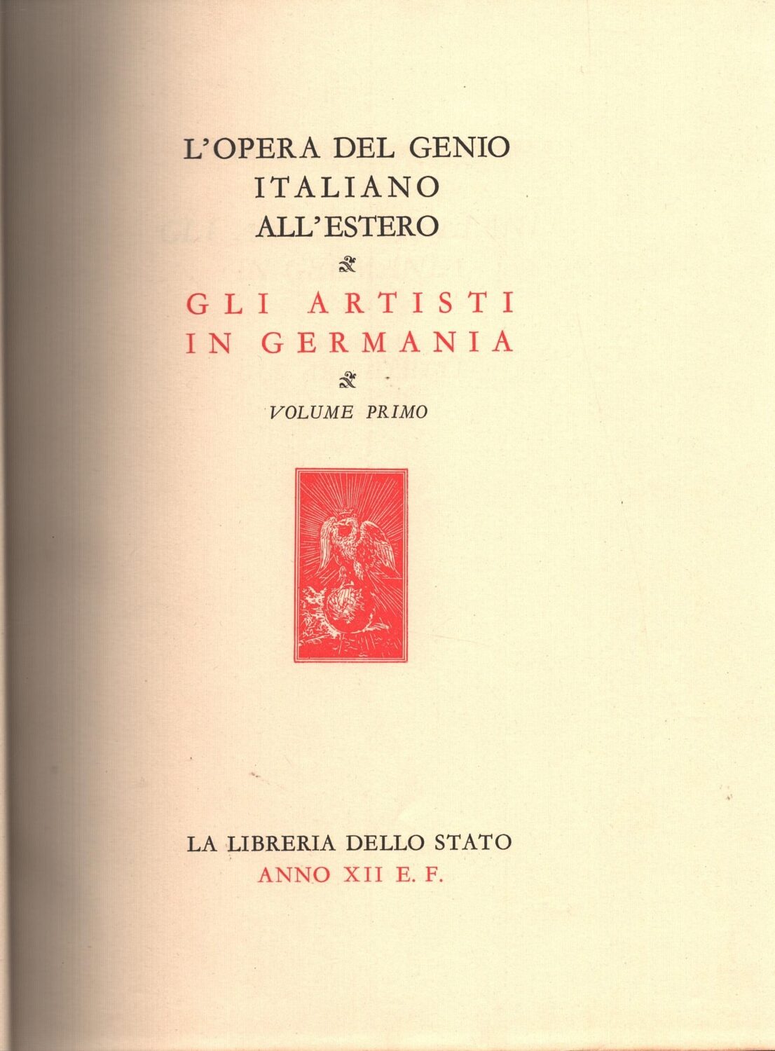 Gli artisti in Germania (vol. 1) – L’opera del genio italiano all’estero ed. La Libreria dello Stato