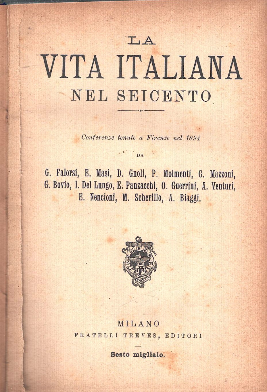 | Titolo: | La vita italiana nel Seicento e nel Settecento – Conferenze tenut a Firenze nel 1894 ed. Tratelli Treves (1914) |