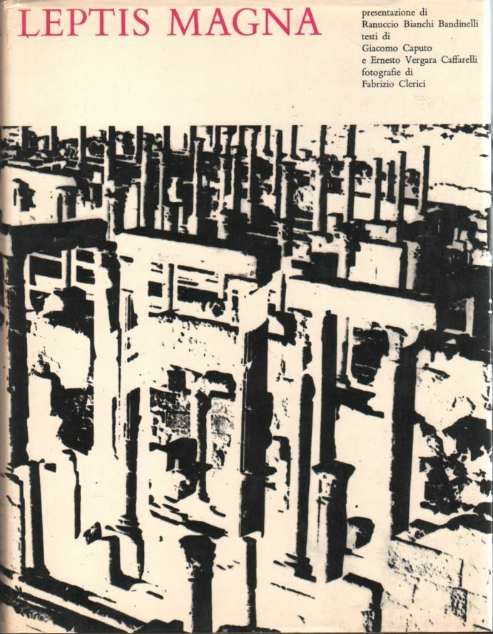 Primo volume in cui venga presentata in maniera sistematica una panoramica degli scavi effettuati a Leptis Magna. Il testo nasca dall’incontro tra il direttore delle antichità della Tripolitania, Caffarelli, il direttore della antichità di Libia Caputo e l’architetto e pittore Fabrizio Clerici, autore delle foto. Bianchi Bandinelli ne ha curato la presentazione |