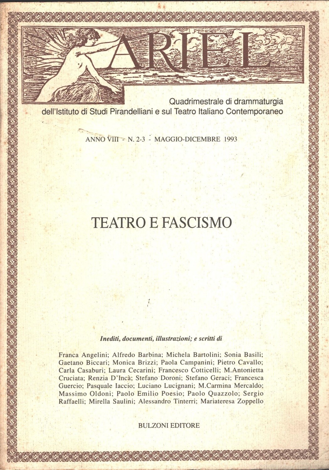 | Titolo: | Teatro e Fascismo n. 2 – 3 Maggio – Dicembre 1993 ed. Bulzoni |