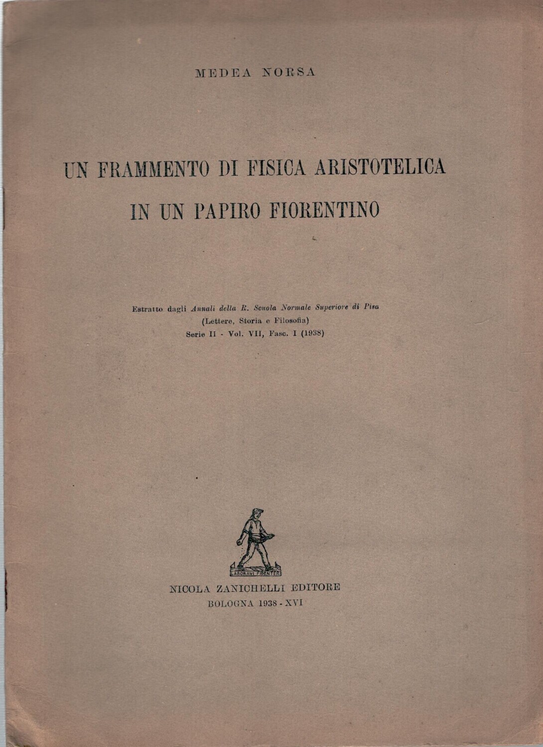 | Titolo: | Un frammento di fisica aristotelica in un papiro fiorentino di Norsa, Medea ed. Zanichelli (1938) |