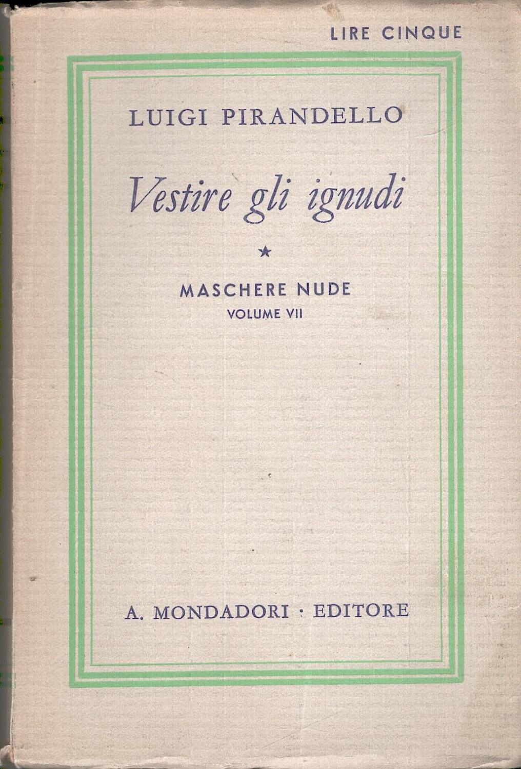 | Titolo: | Vestire gli ignudi – Maschere nude volume VII di Luigi Pirandello ed. Mondadori (1932) |