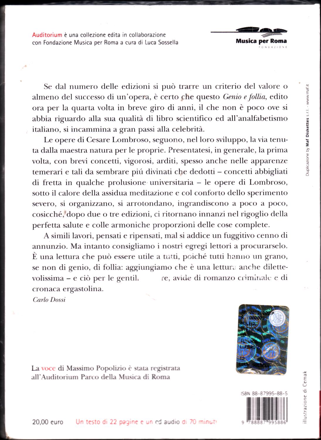| Titolo: | Il caso Lombroso. Patologie italiane. Testo (22 pagine) Con CD Audio di Popolizio Massimo |