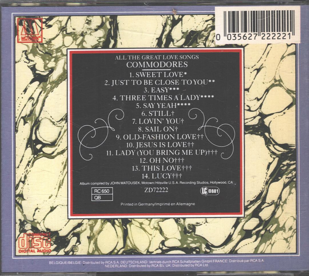 | Titolo: | All the great love songs di Commodores – CD Audio (ZD72222) |