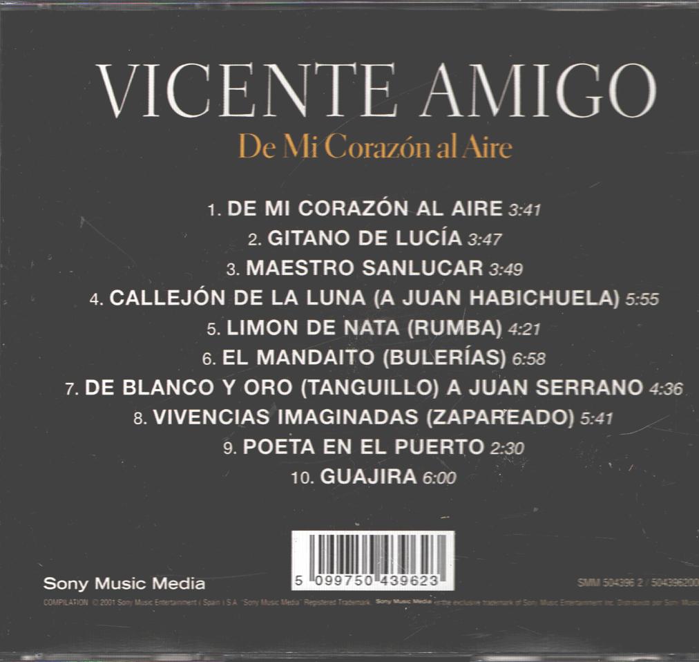 | Titolo: | De mi Corazon al aire y otros grandes exitos di Vicente Amigo – CD Audio |