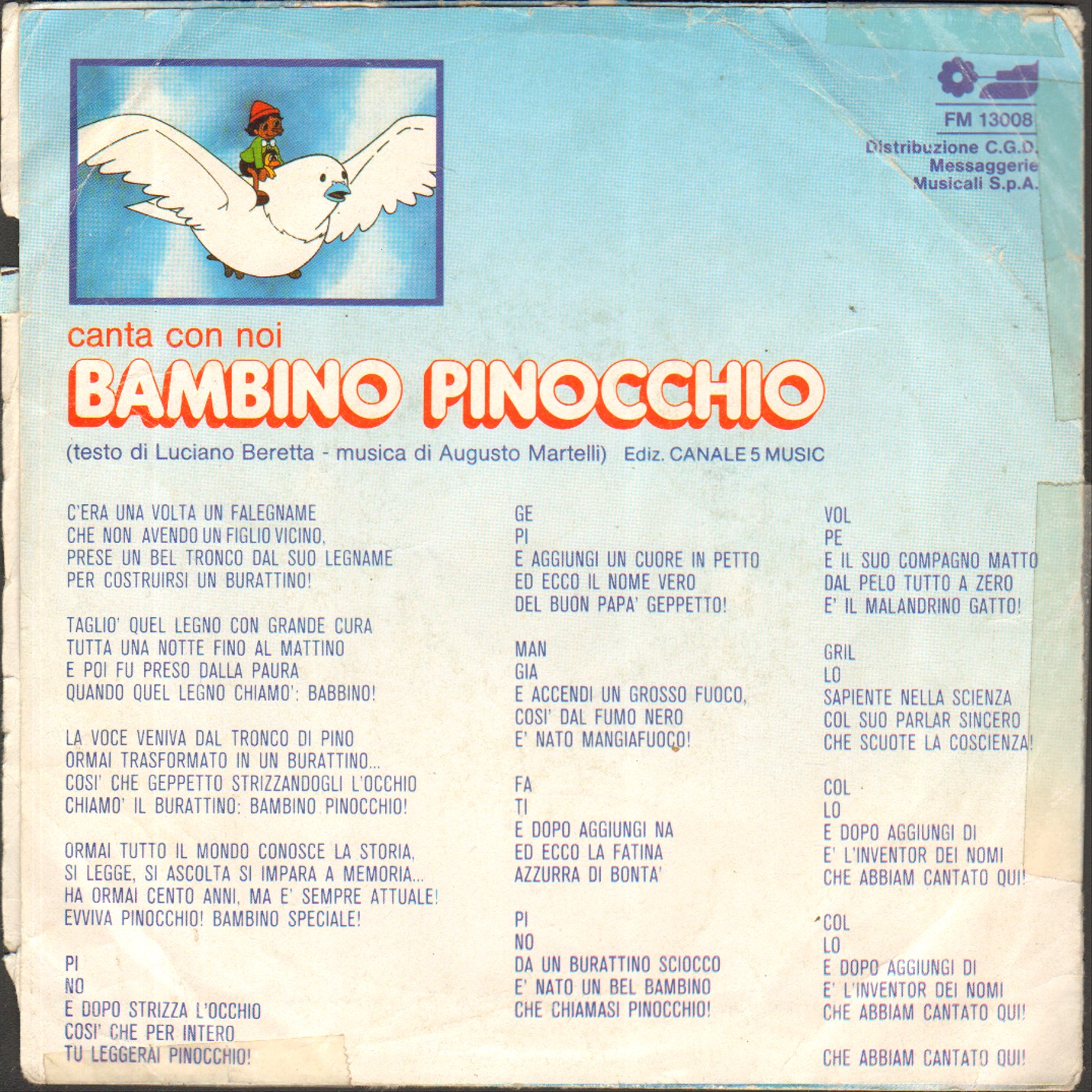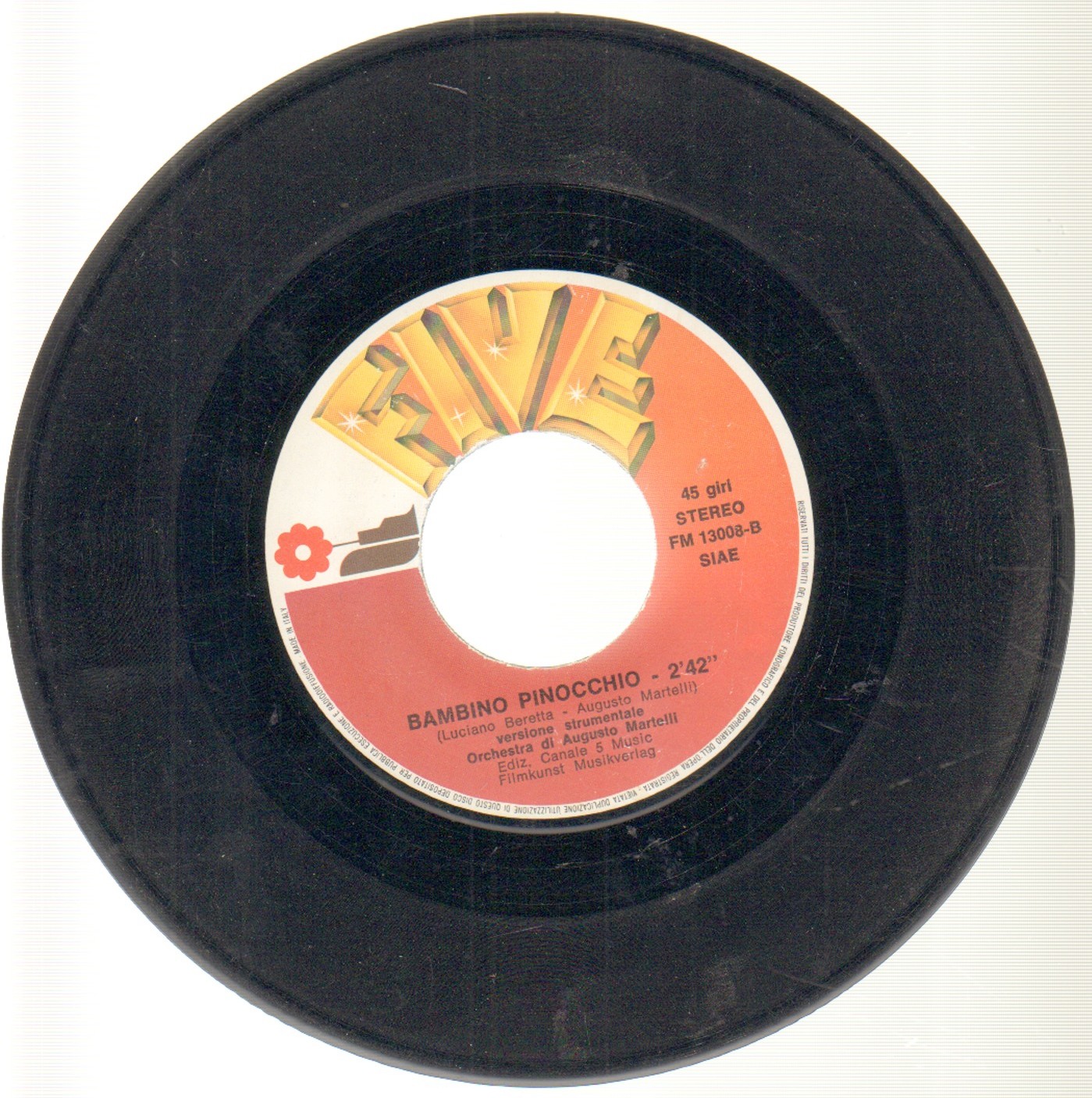 Bambino Pinocchio canta Cristina D’Avena. Disco in Vinile 45 giri. Five Record (FM 13008) – Sigla della Serie Televisiva in onda su Canale 5