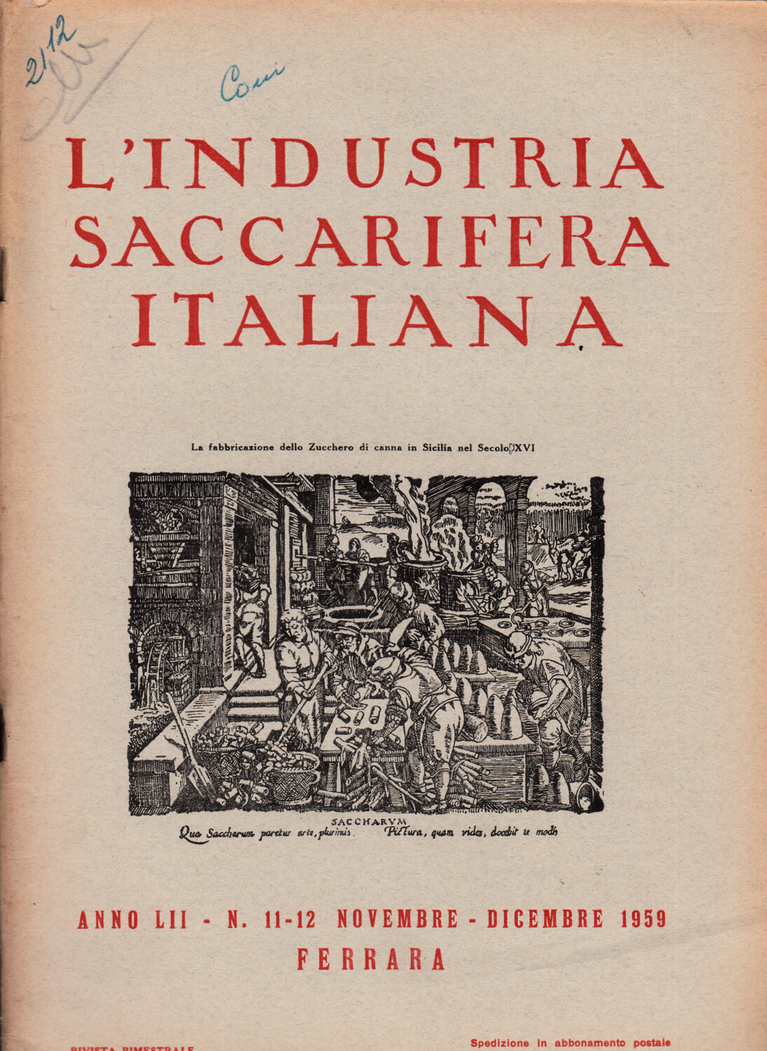 | Titolo: | L’Industria Saccarifera Italiana anno LII n. 11 – 12, Novembre – Dicembre 1959. Rivista Bimestrale |