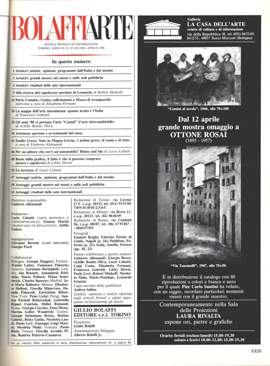 | Titolo: | Bolaffi Arte n. 97 – Aprile 1980 – In copertina Emilio Greco Clio ed. Bolaffi |