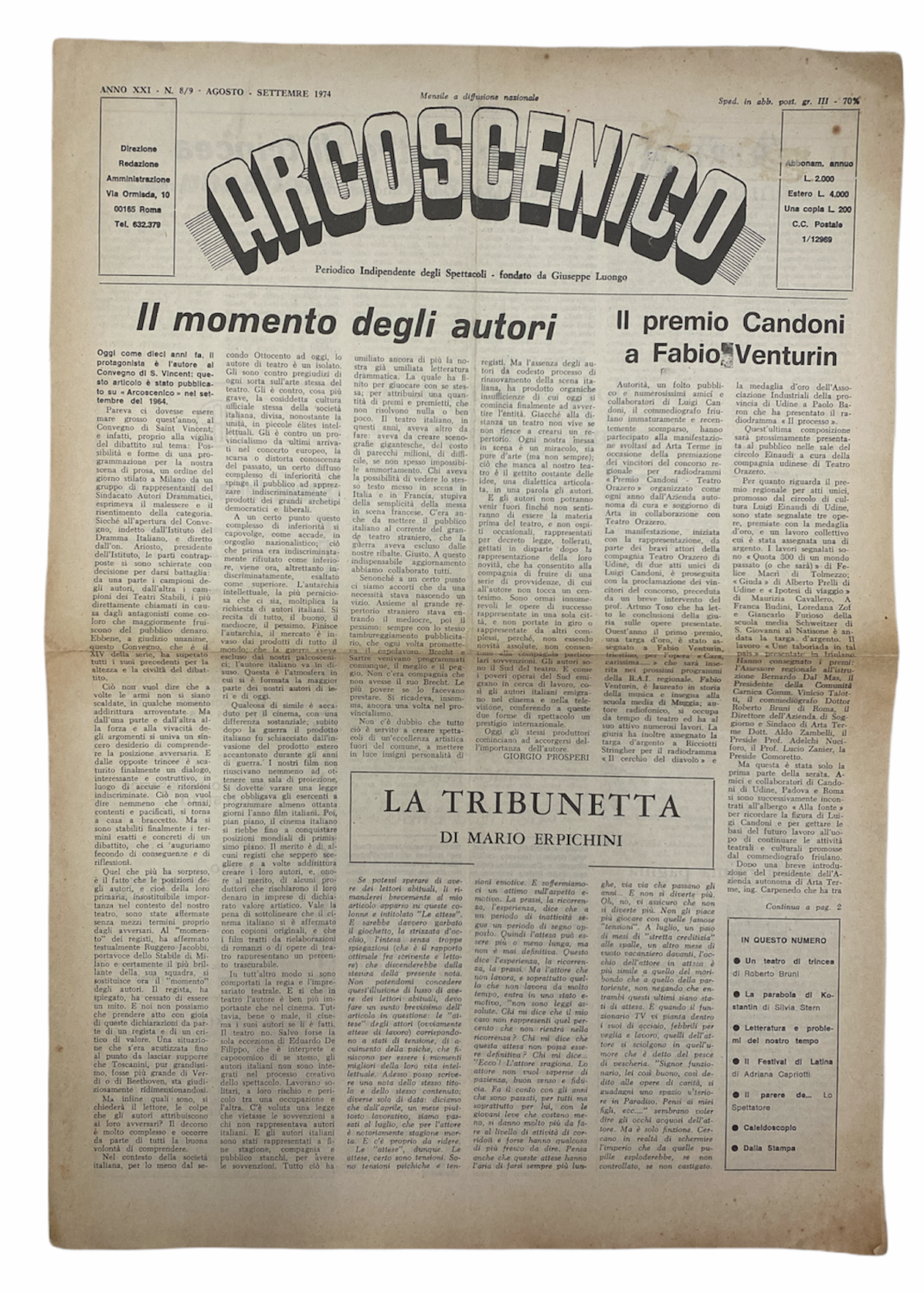 | Titolo: | Rivista ARCOSCENICO n.8/9 Agosto- Settembre 1974 Giornale degli Spettacoli |