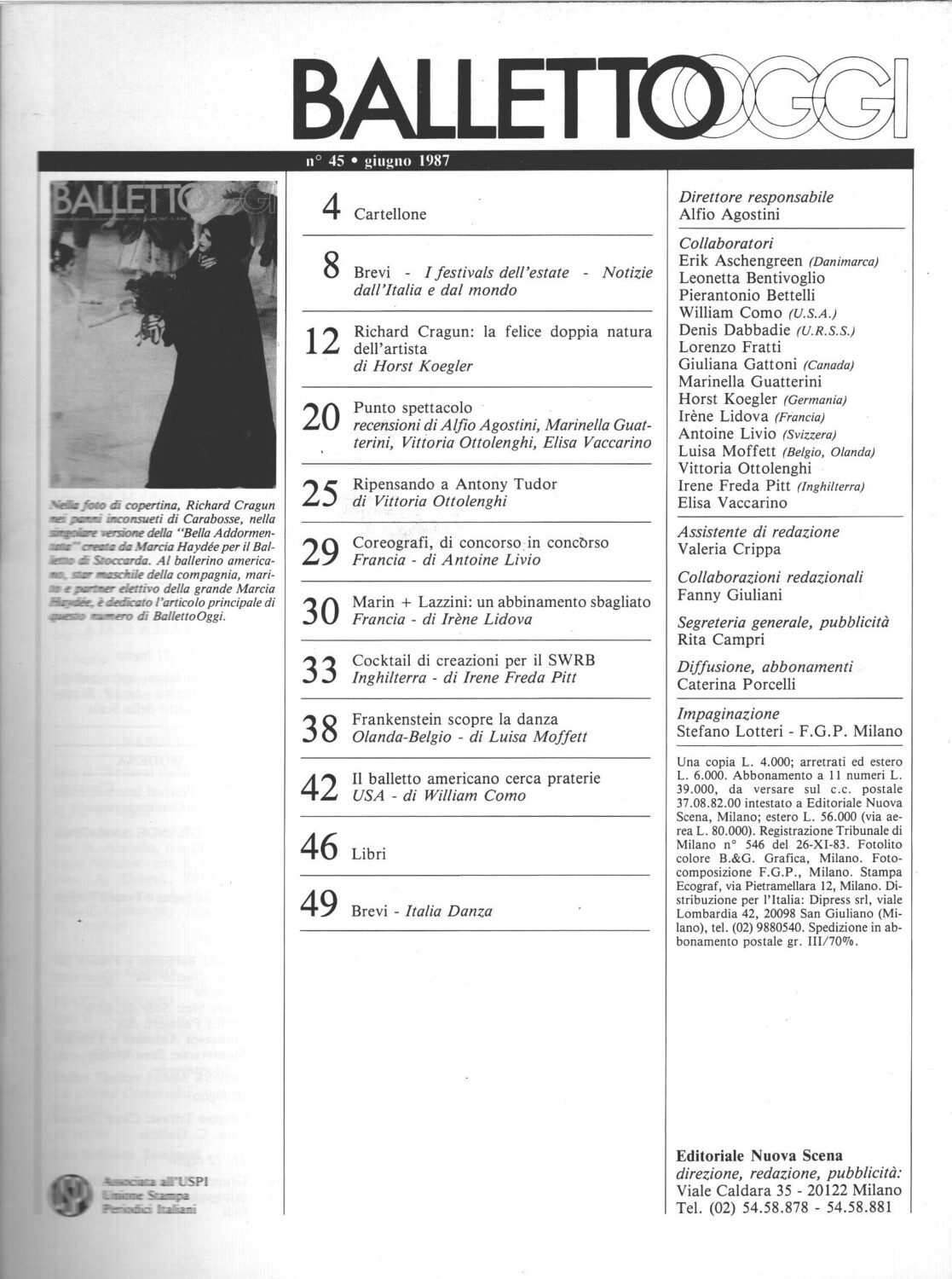 Rivista Balletto Oggi n. 45 – Giugno 1987 – In copertina Richard Cragun ed. Nuova Scena