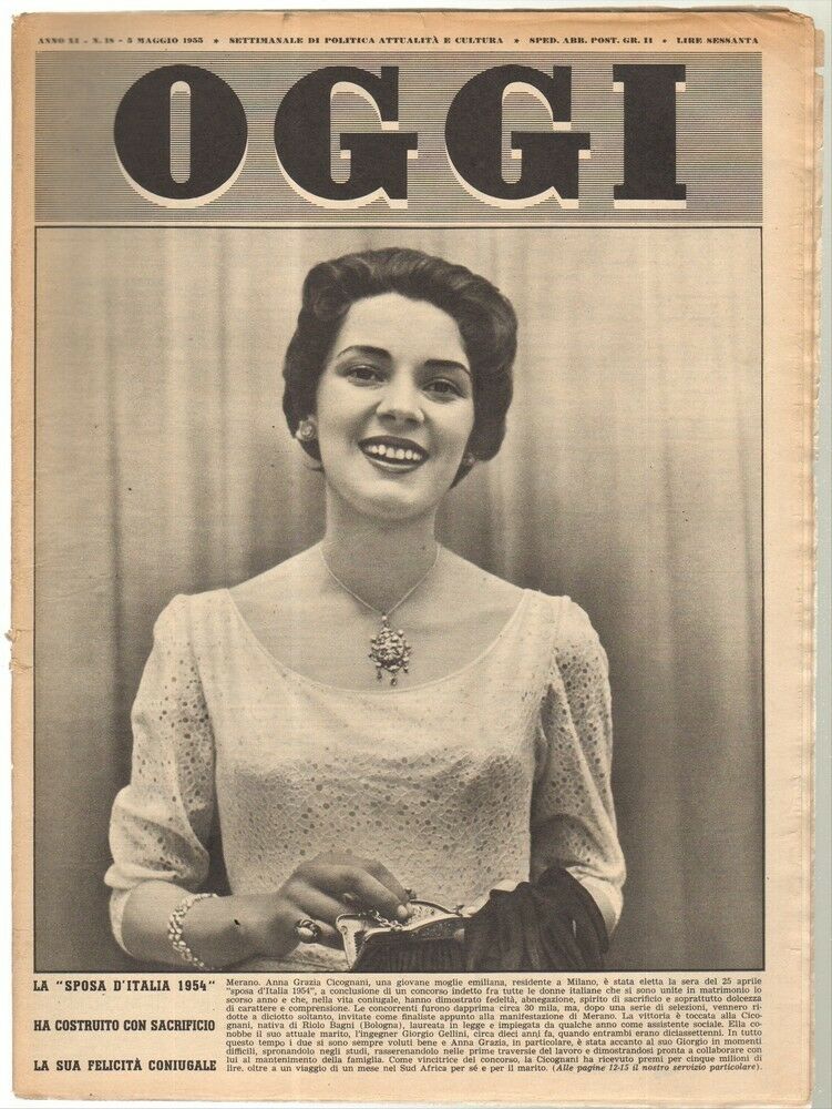 Rivista OGGI Anno 1955 n. 18 del 5 Maggio – In copertina Anna Grazia Cicognani