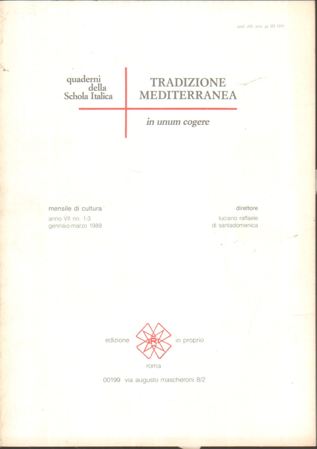 | Titolo: | Rivista Tradizione Mediterranea. Quaderni della Schola Italica Anno VII n. 1-3 – Gennaio, Marzo 1989 ed. Edizione in Proprio |
