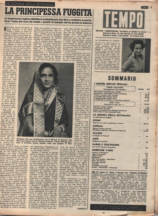 | Titolo: | Rivista Tempo n. 45 del 11 Novembre 1954 – In copertina Alida Valli |