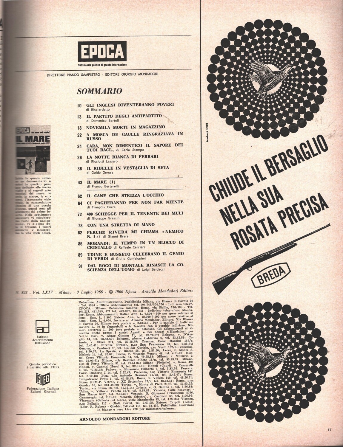 | Titolo: | Rivista Epoca n. 823 – 3 Luglio 1966 – In copertina foto Il Mare (con figurine) ed. Mondadori |