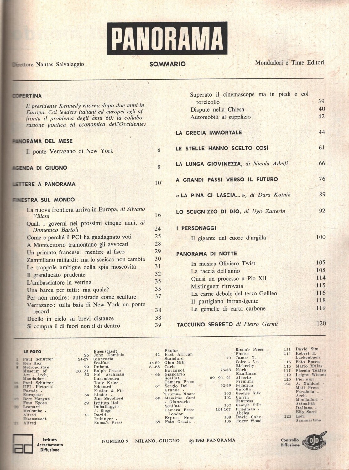 | Titolo: | Rivista Panorama n. 9 – Giugno 1963 – In copertina Kennedy |