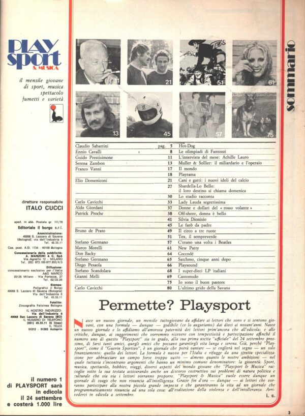 | Titolo: | Play Sport n. 0 – Agosto Settembre 1976 – In copertina Silvia Dionisio ed. Il Borgo |