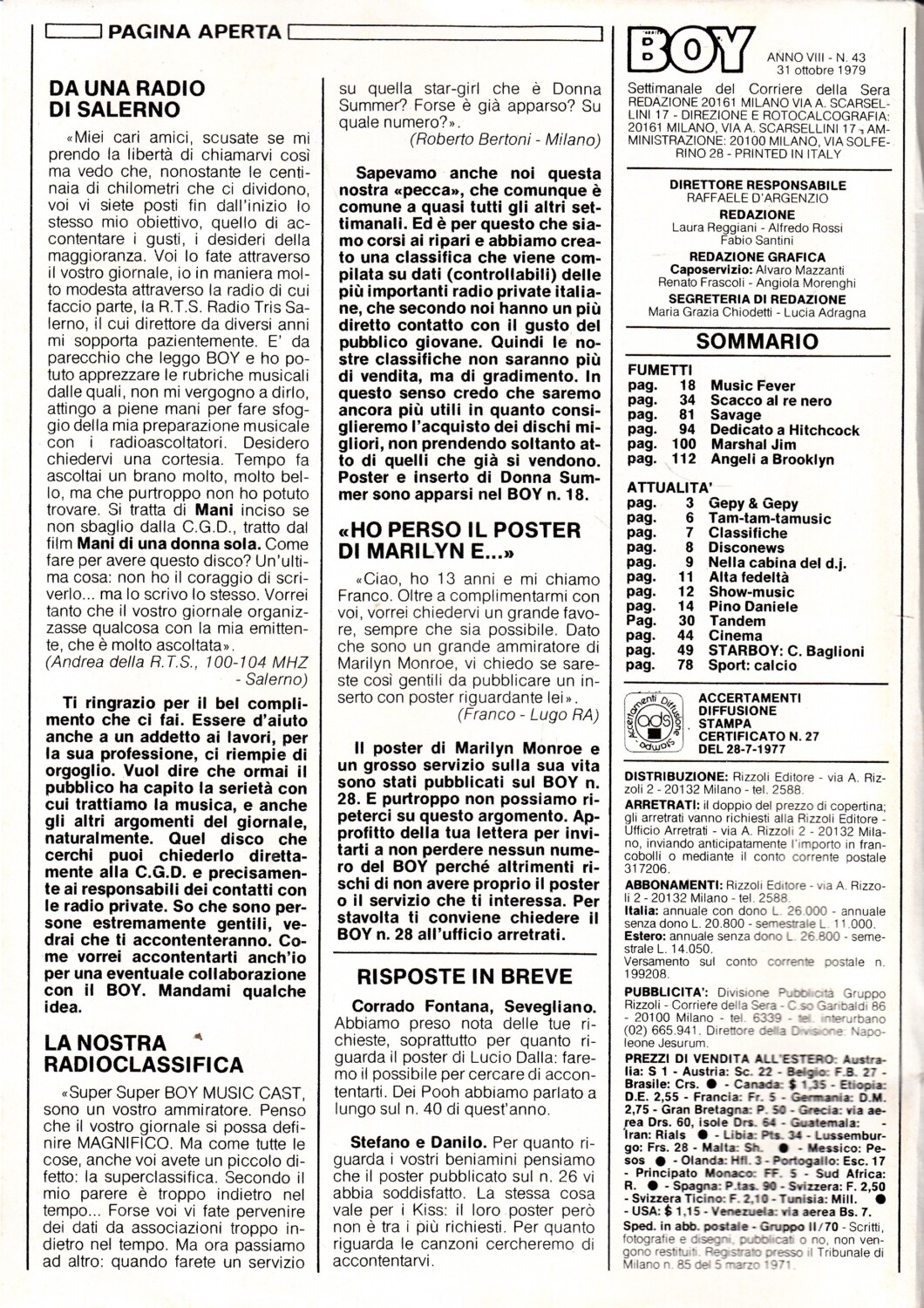 | Titolo: | Rivista Boy Music n. 43 del 31 Ottobre 1979. In copertina: Claudio Baglioni. CON Poster |