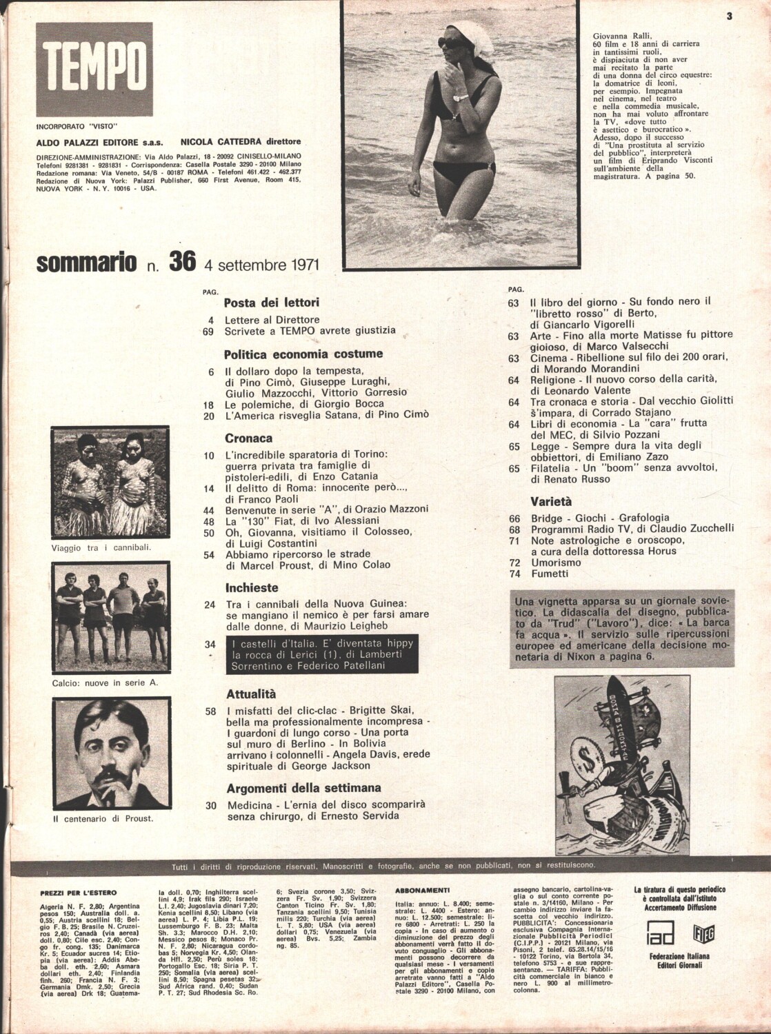 Rivista Tempo n. 36 del 4 Settembre 1971 ed. Aldo Palazzi