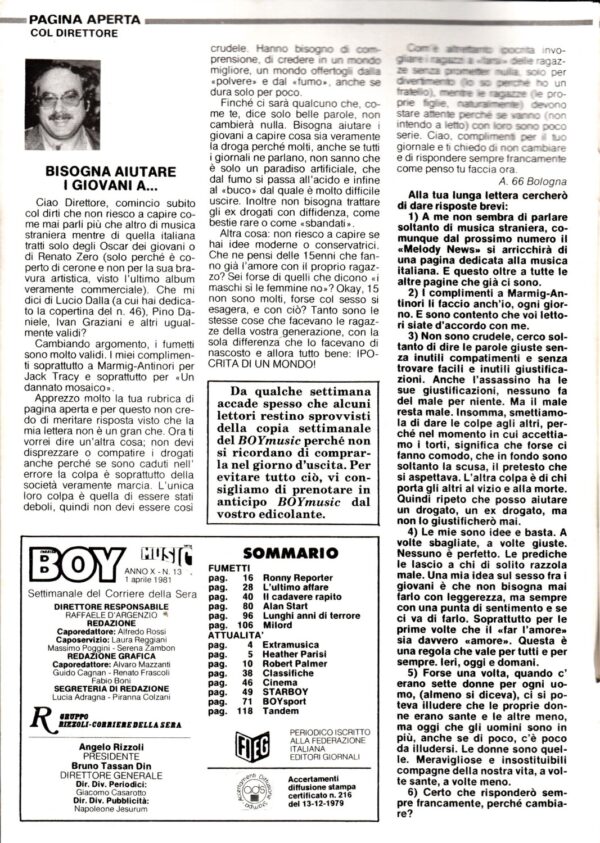 | Titolo: | Rivista Boy Music n. 13 del 1 Aprile 1981. In copertina: Heather Parisi. SENZA Poster |