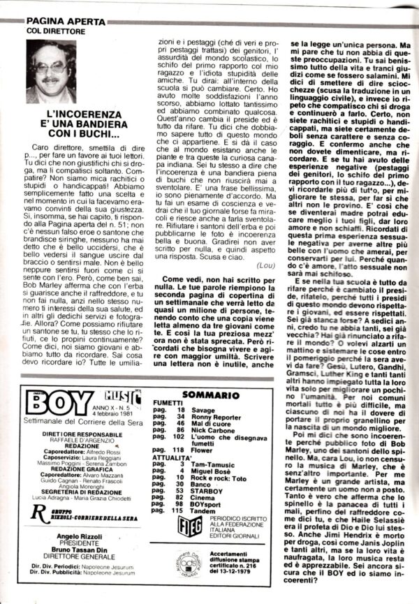 | Titolo: | Rivista Boy Music n. 5 del 4 Febbraio 1981. In copertina: Miguel Bosè. SENZA Poster |