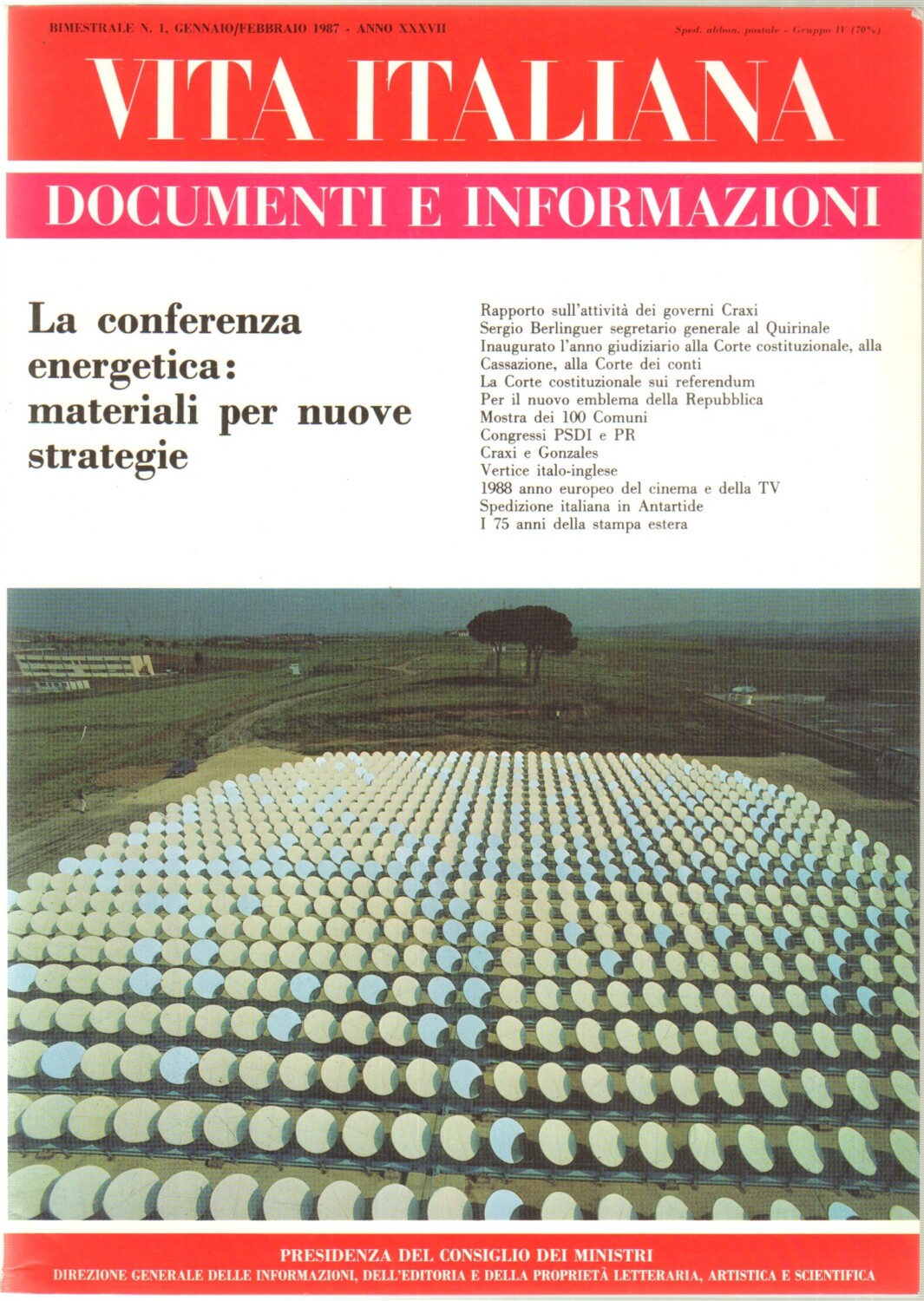 | Titolo: | Rivista Vita Italiana Documenti e Informazioni n. 1 – Gennaio/Febbraio 1987 ed. Presidenza del Consiglio dei Ministri |