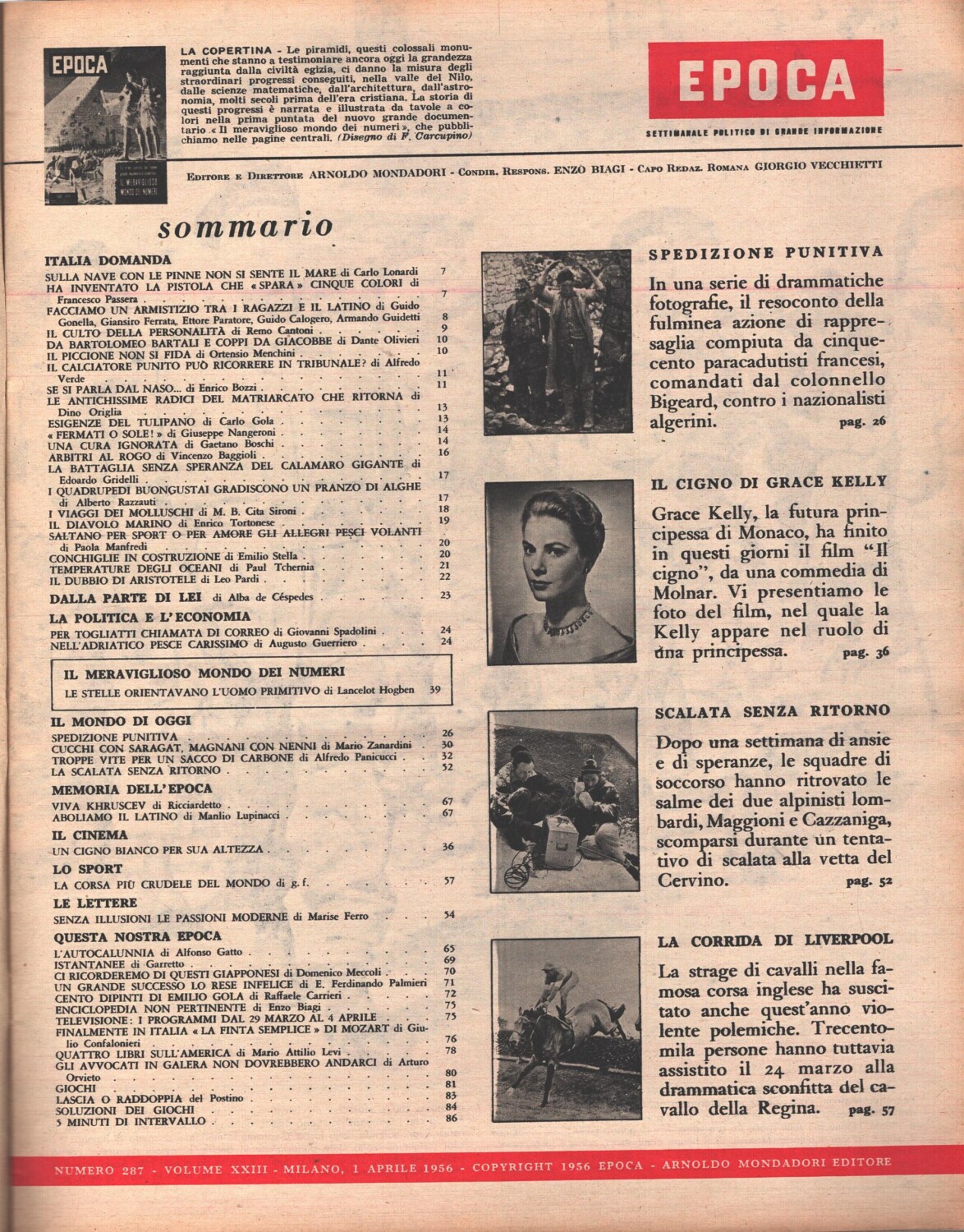 | Titolo: | Rivista Epoca n. 287 del 1 Aprile 1956 ed. Mondadori |
