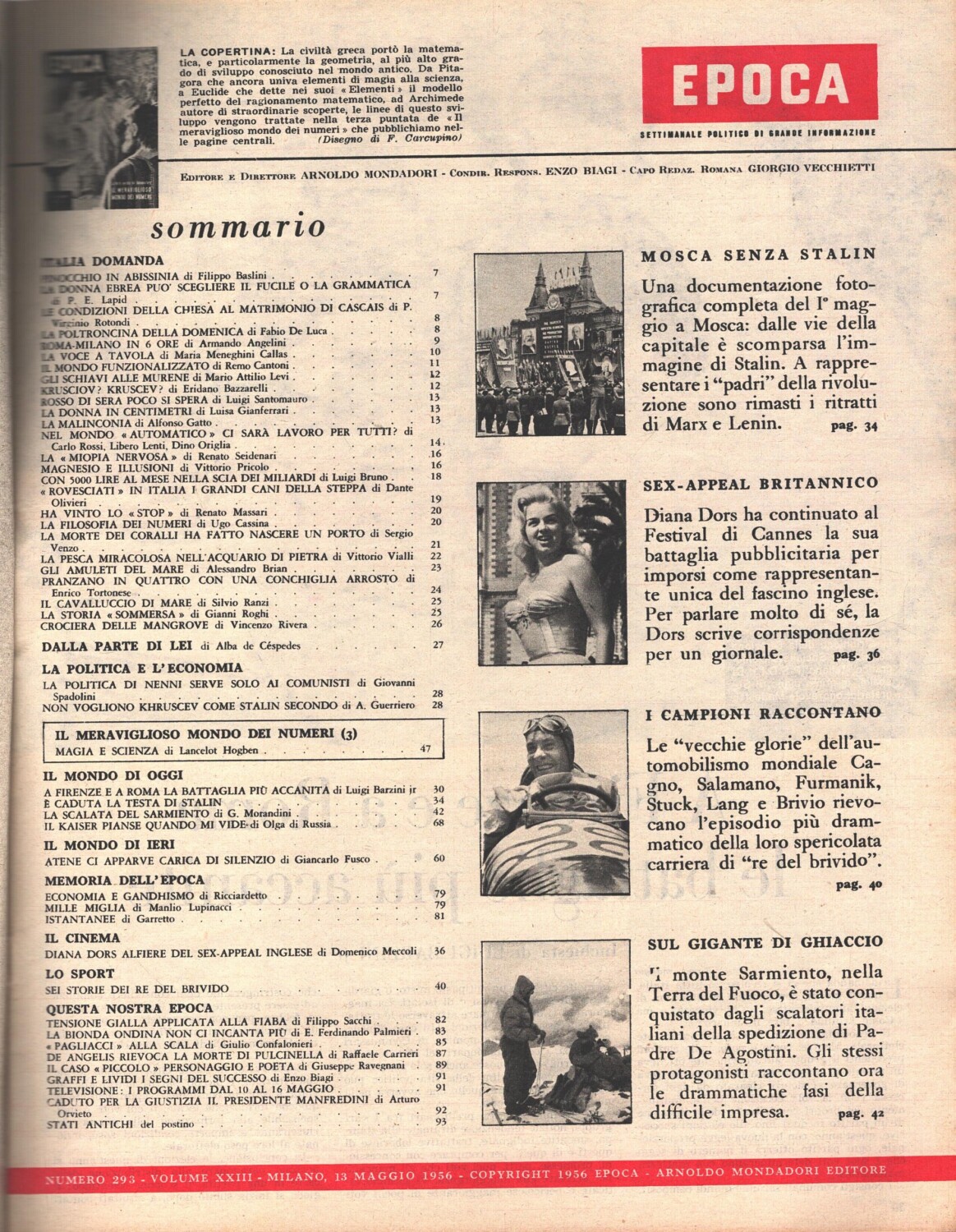 | Titolo: | Rivista Epoca n. 293 del 13 Maggio 1956 ed. Mondadori |