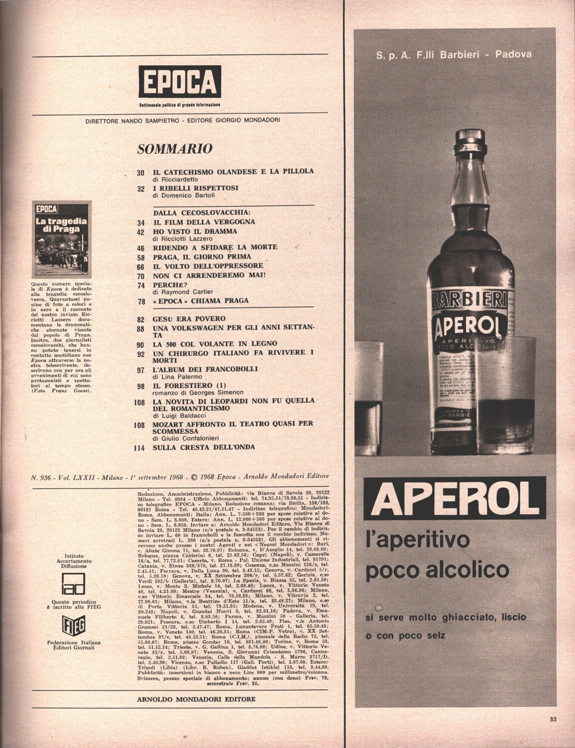 | Titolo: | Rivista Epoca n. 396 del 1 Settembre 1968 – In copertina La tragedia di Praga |