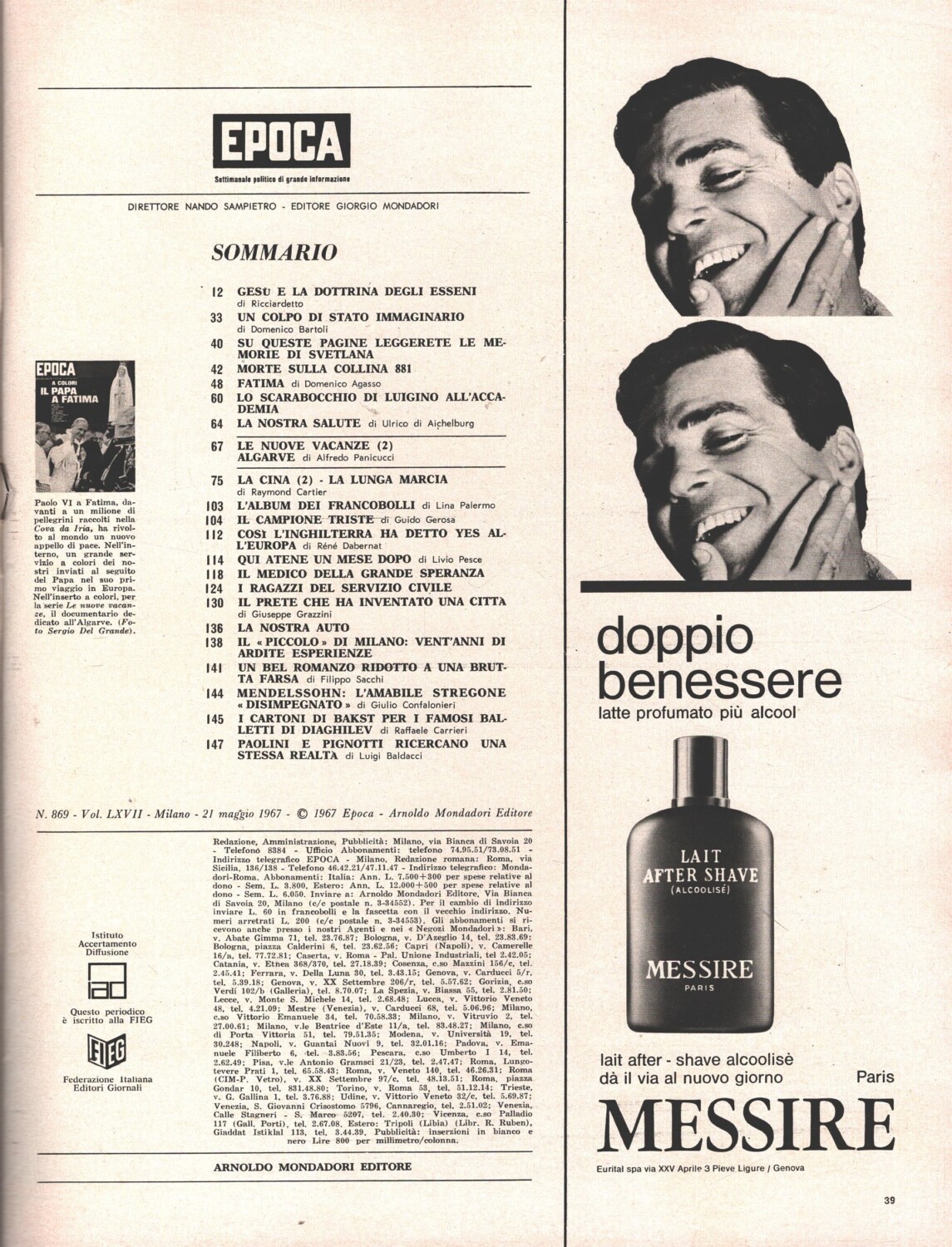 Rivista Epoca n. 869 del 21 Maggio 1967 – In copertina Papa Paolo VI