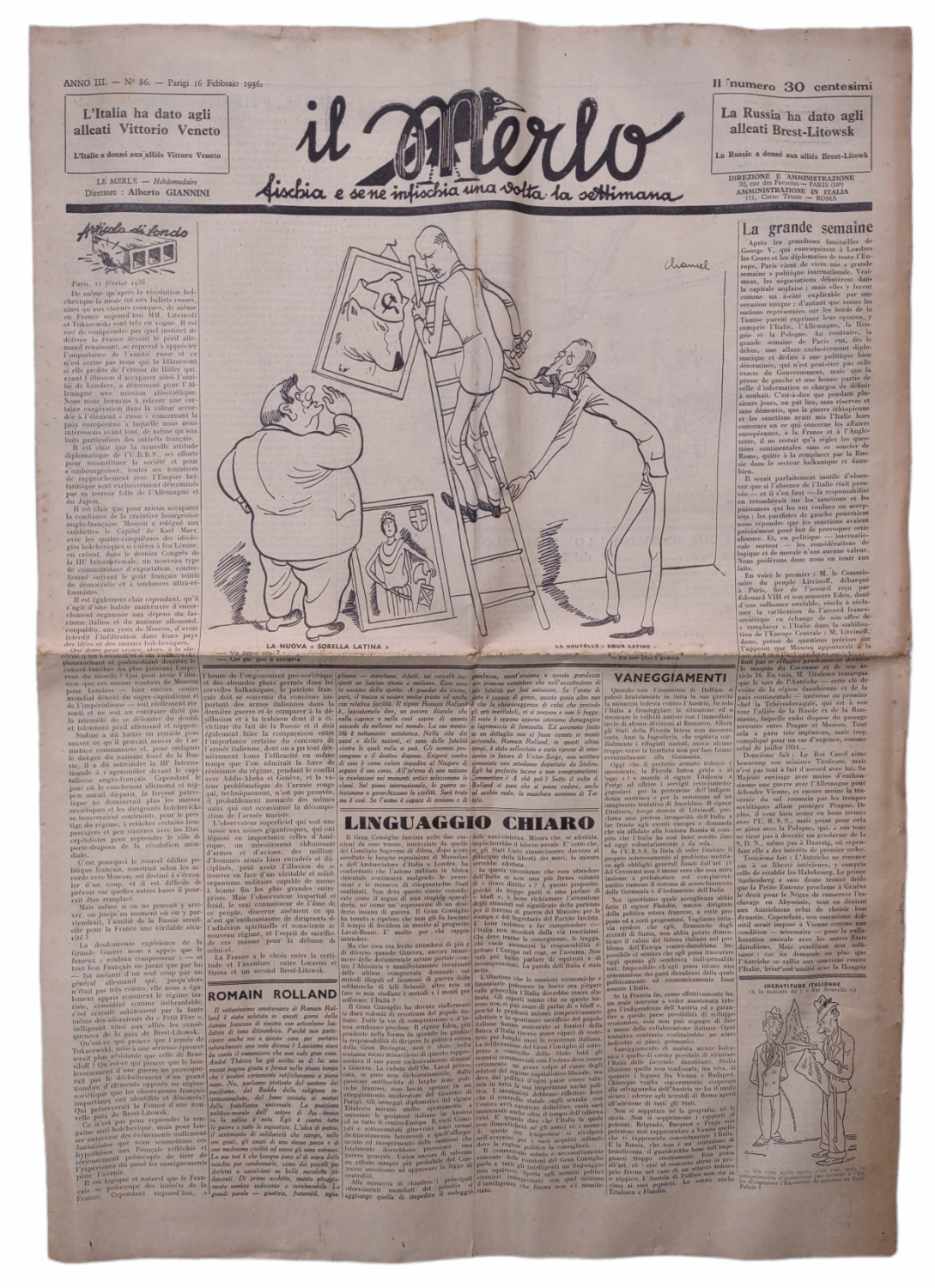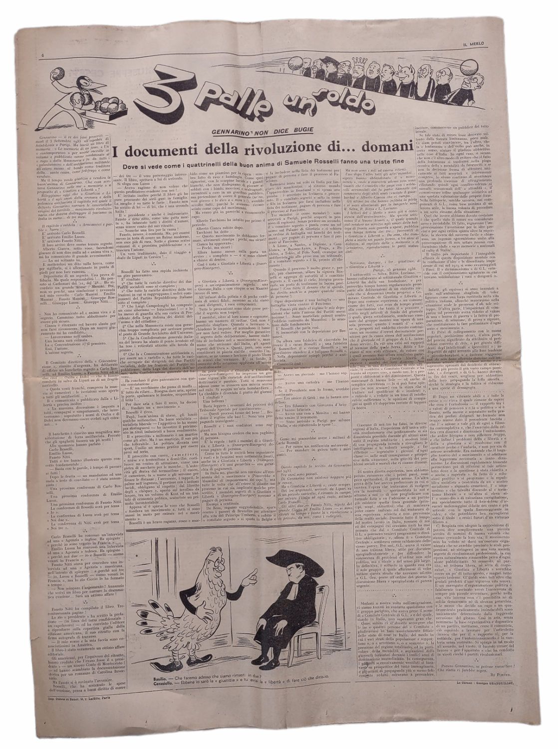 | Titolo: | Il Merlo. Rivista satirica clandestina fascista edita in Francia. Parigi 16 Febbraio 1936. Il Merlo. Fischia e se ne infischia una volta la settimana |